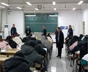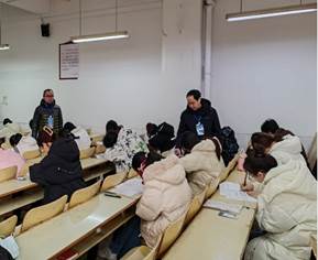 多部门联动,深入考场开展考风考纪巡查。教学质量管理处处长房正宏、学生工作处处长黄正杰、研究生处处长闫成俭、教务处副处长唐剑、研工部副部长徐礼堂、教学质量管理处副处长崔方达以及相关部门工作人员组成期末考风考纪巡查小组,走进考场巡查考试环境、考场纪律和学生考风等情况。在巡查过程中,巡查小组发现问题及时向相关学院领导反馈,并督促监考教师及时处理。