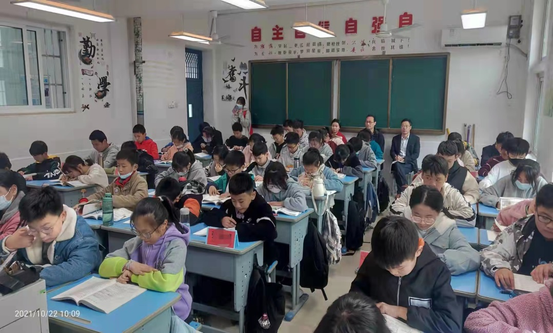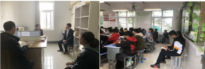 房正宏一行首先与语文组组长刘涛及七年级班主任宁利萍两位老师进行访谈,了解颍州中学对实习学生的计划安排,调查我校实习生的听课、见习及班主任实习情况,听取一线教师的意见和建议。随后,听取实习生林雨霏的一堂公开课《走一步,再走一步》。公开课结束后,房厚信、刘涛对林雨霏同学的授课情况进行了点评并指导。
