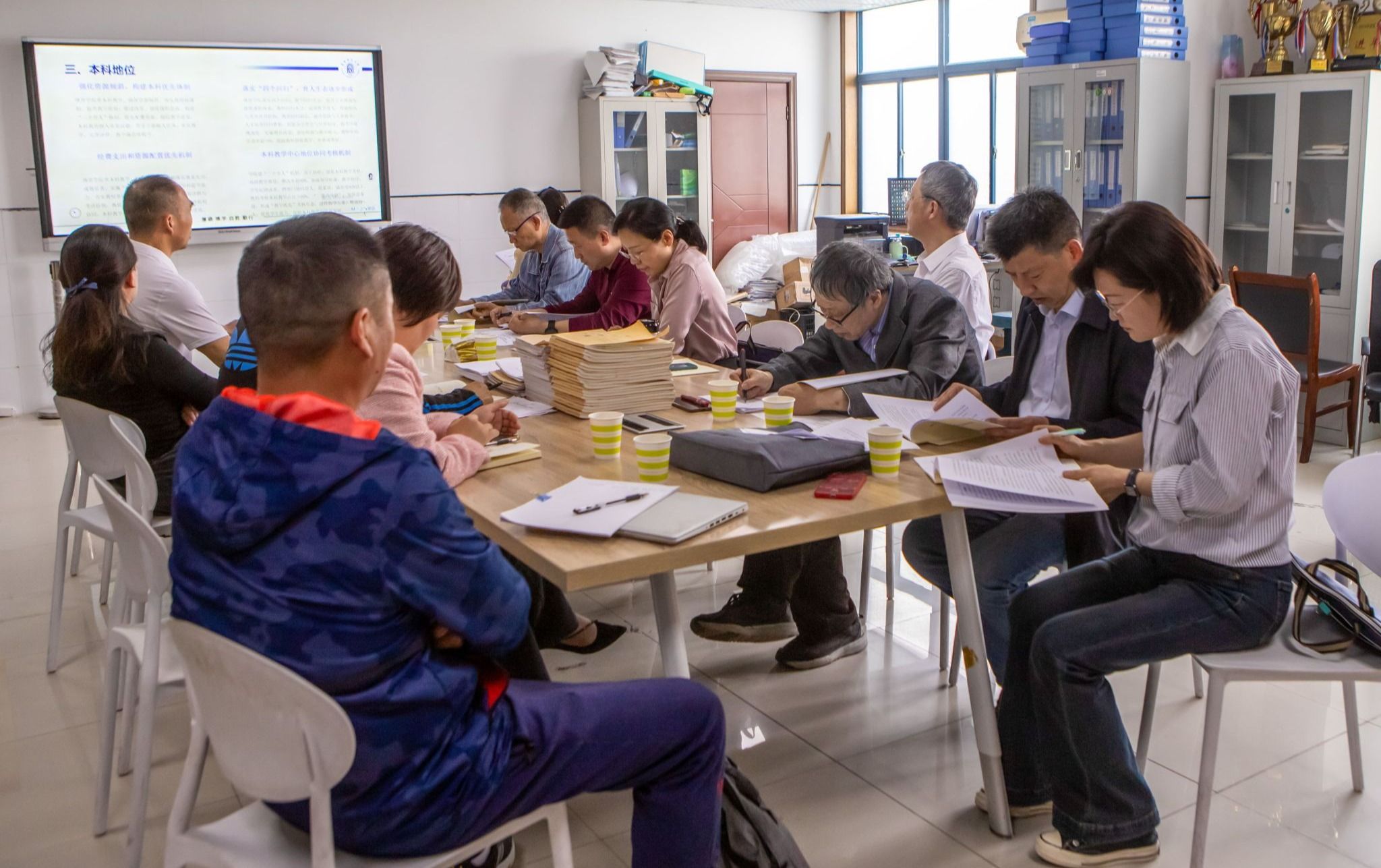 督查组通过听取学院自评自建情况汇报、查阅培养方案及课程大纲、调阅教学档案资料、随堂看课等多种方式,全方位了解二级学院审核评估推进情况。