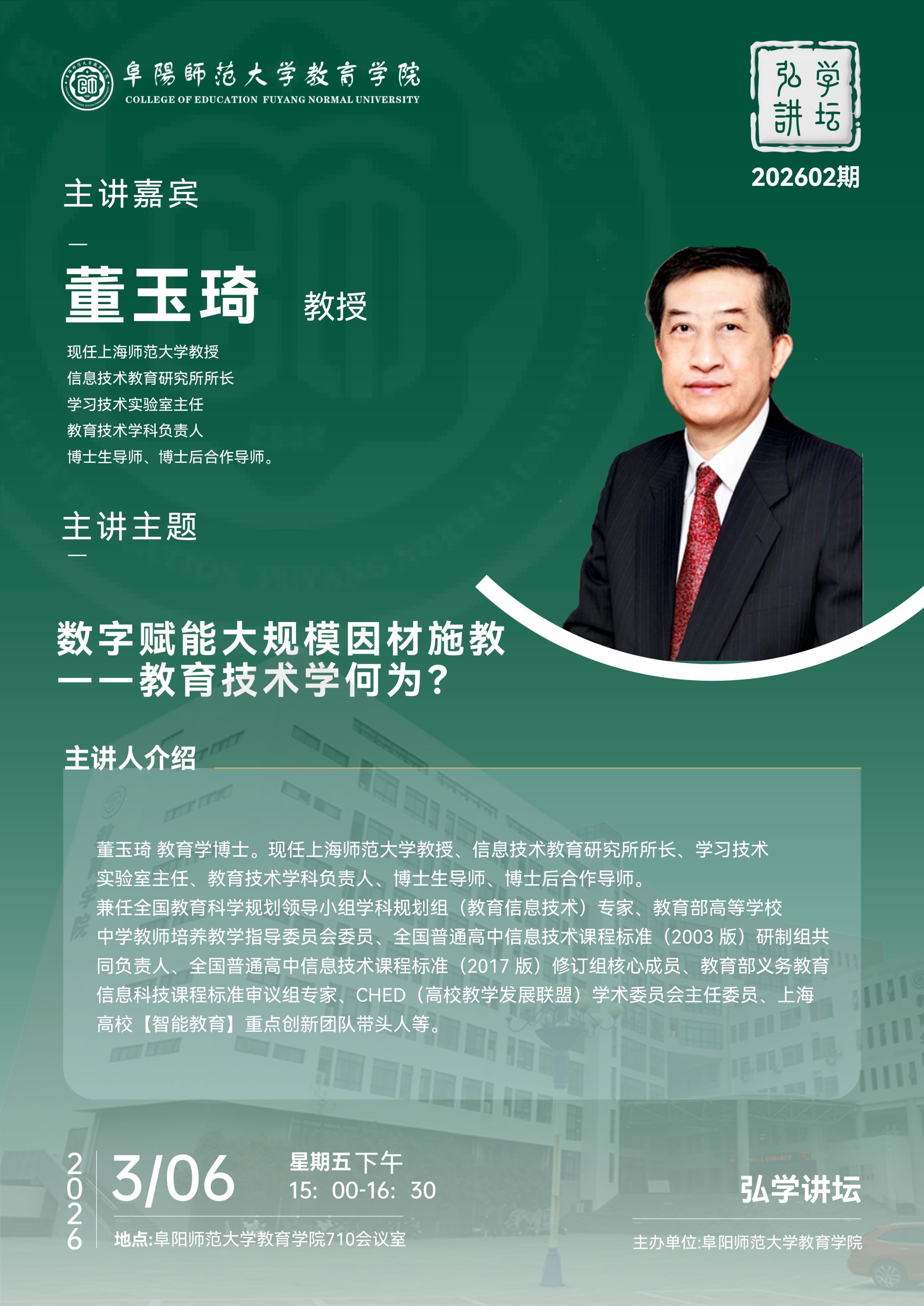 【弘学讲坛202602期】-董玉琦 数字赋能大规模因材施教——教育技术学何为?