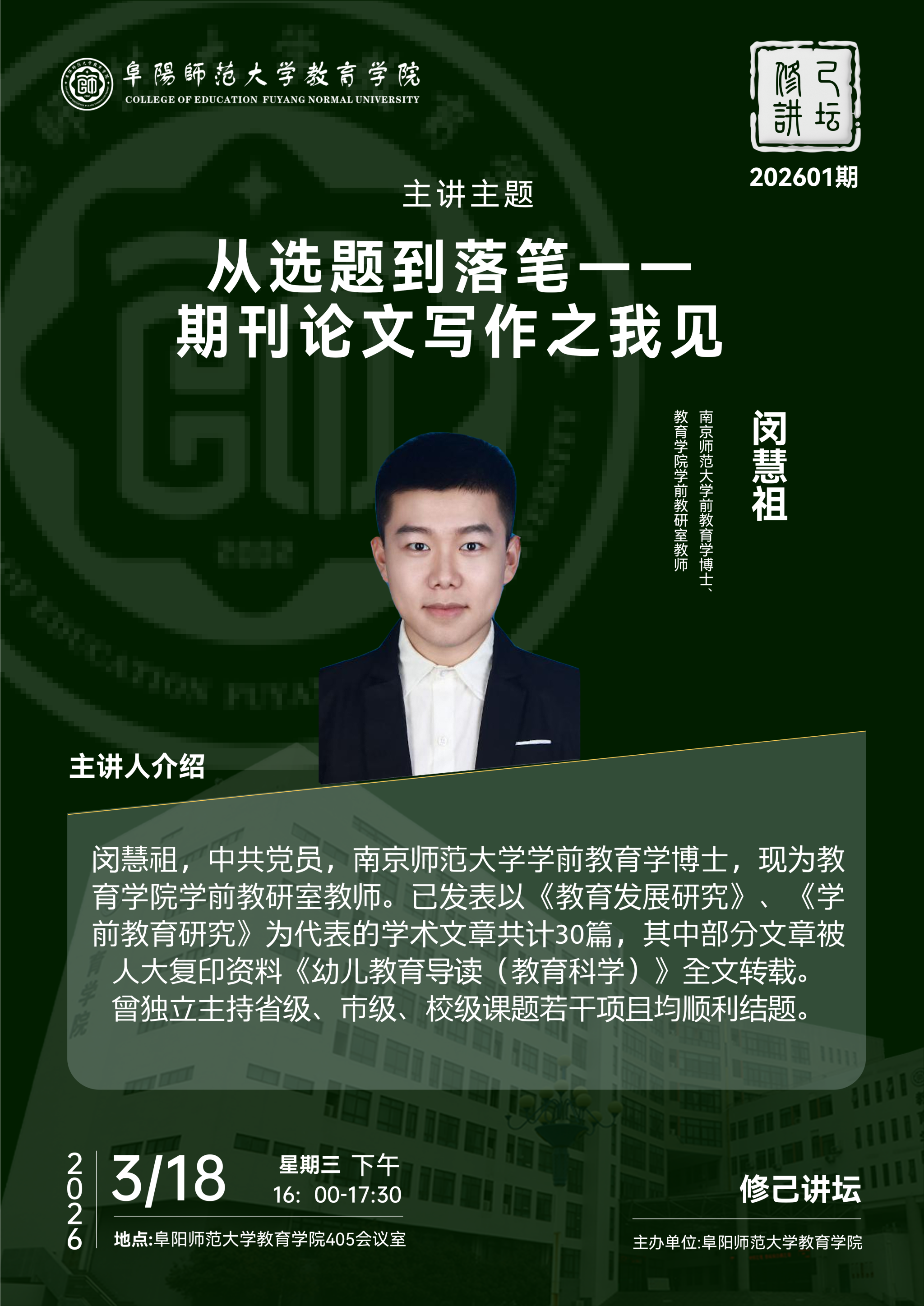 【修己讲坛202601期】-闵慧祖 从选题到落笔一一期刊论文写作之我见