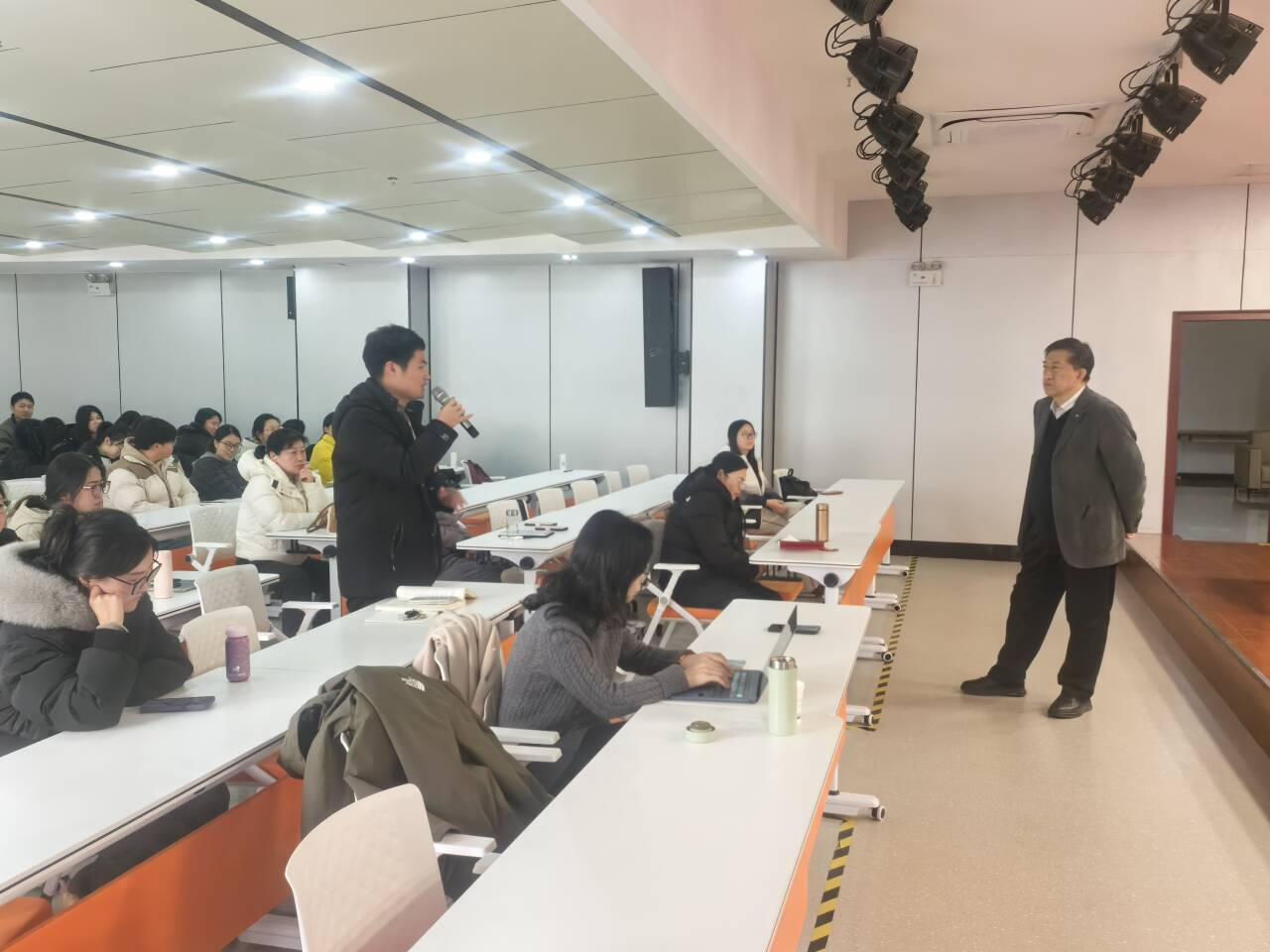 互动环节,现场气氛热烈。老师、同学们就技术伦理、学科发展、个人学习规划等问题与董教授进行了深入交流。董教授耐心解答,并鼓励同学们立足专业、深耕细作,积极拥抱变革,为未来教育的发展贡献智慧与力量。