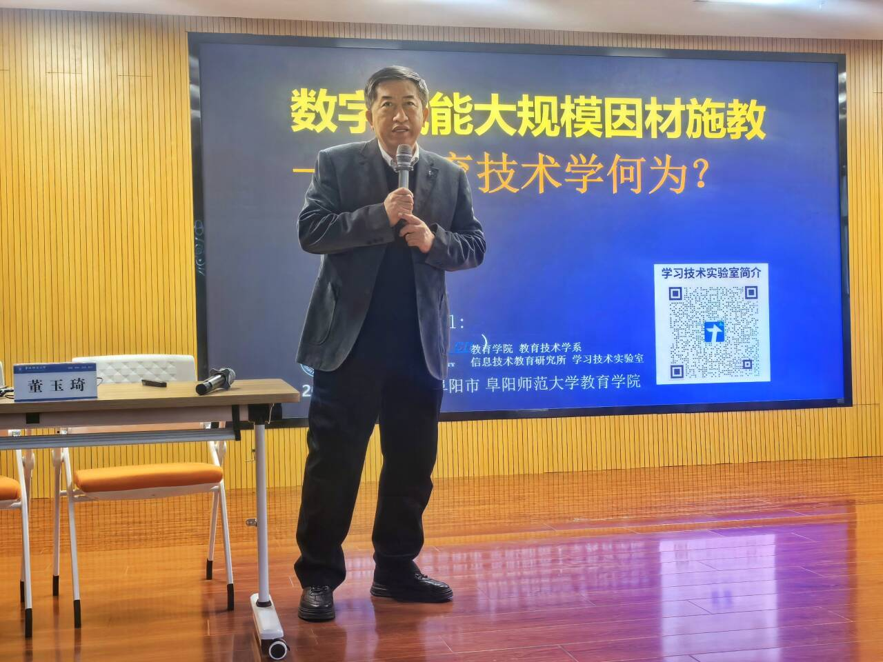 为深化师生对教育技术学科前沿动态的认识,拓宽学术视野,2026年3月6日下午,我院特邀上海师范大学教授、博士生导师、信息技术教育研究所所长董玉琦教授作客第202602期“弘学讲坛”,以“数字赋能大规模因材施教——教育技术学何为?”为主题开展学术讲座,学院相关负责人及部分师生参加了此次活动。