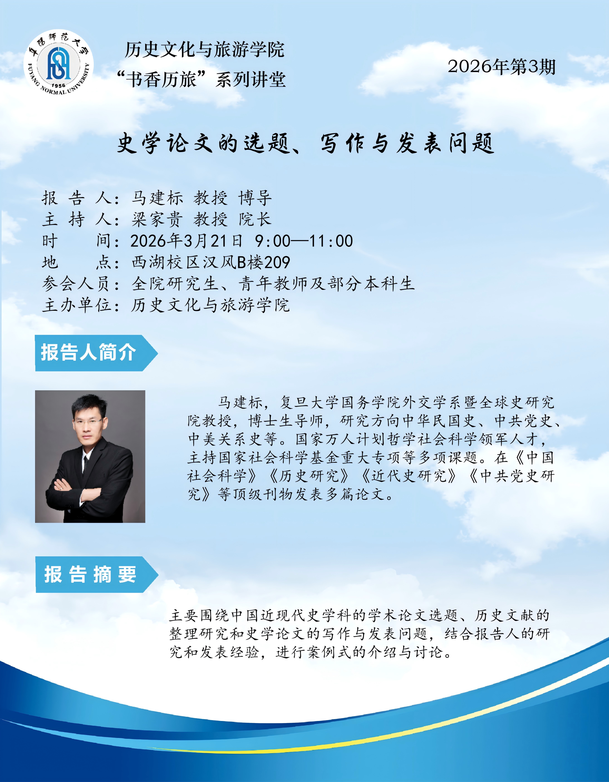 “书香历旅”系列讲堂2026年第3期:史学论文的选题、写作与发表问题