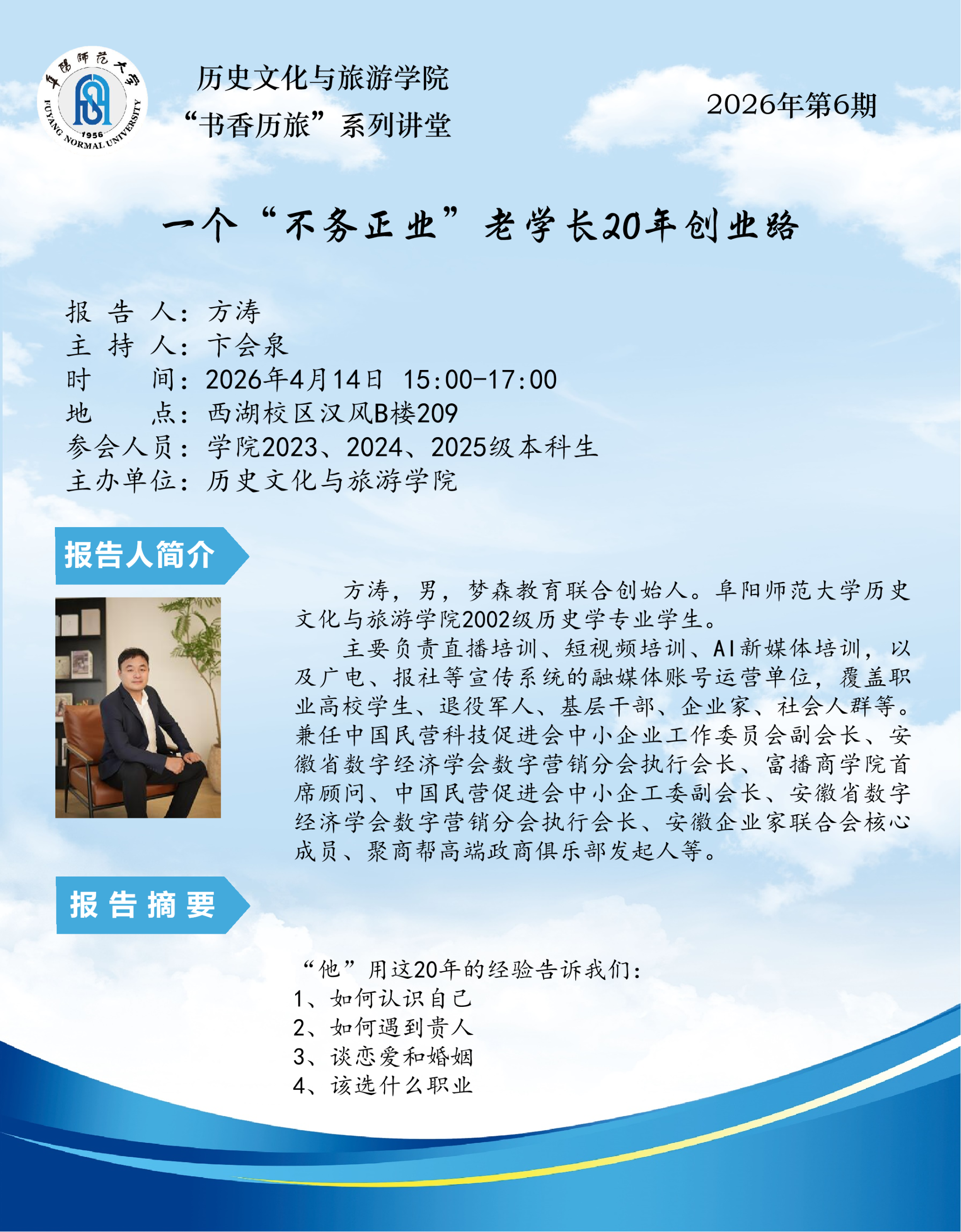 “书香历旅”系列讲堂2026年第6期:一个“不务正业”老学长20年创业路