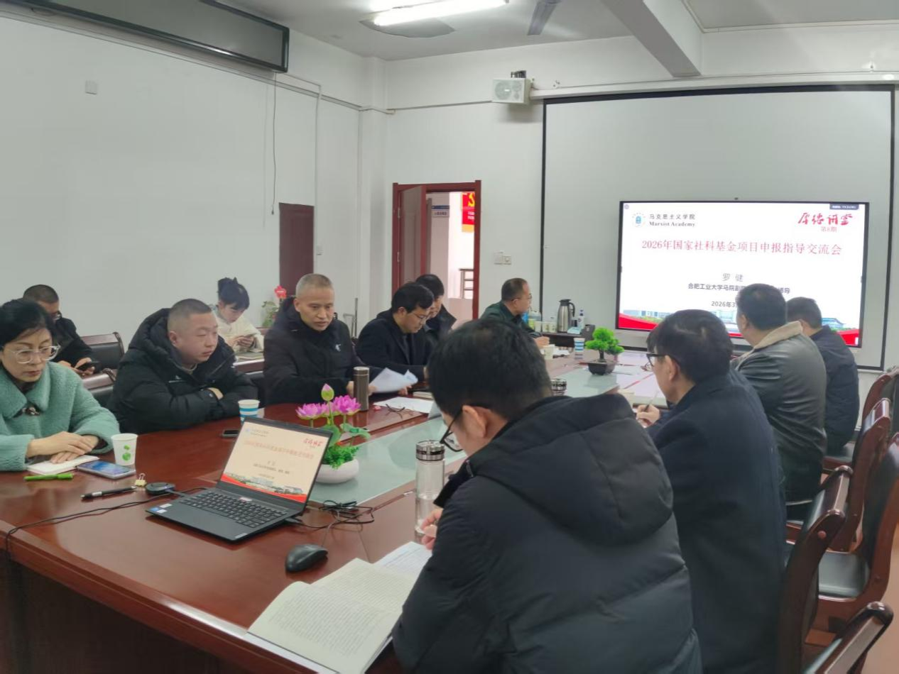 为深入推进学院教师科研能力提升,助力2026年国家社科基金项目高质量申报。3月15日,我院邀请合肥工业大学马克思主义学院博士生导师罗健教授在211会议室作国家社科基金申报指导。会议由院长朱宗友主持,学院党委书记夏小华、副院长赵灯峰及社科基金申报人员等20余人参加会议。