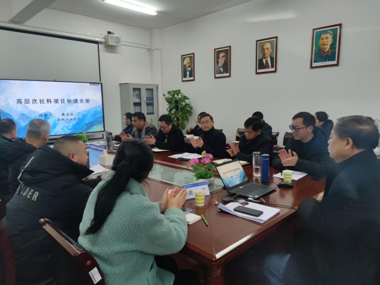 为进一步提升我院教师国家社科基金项目申报质量,强化学科内涵建设与科研创新能力,3月15日,我院特邀合肥工业大学马克思主义学院二级教授、博士生导师黄志斌莅临指导,开展国家社科基金项目申报专题辅导报告会。辅导报告会由学院院长朱宗友主持,副院长赵灯峰及二十余名拟申报国社科项目的骨干教师参会交流学习。
