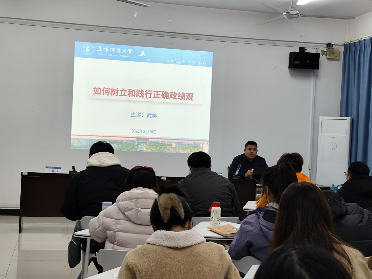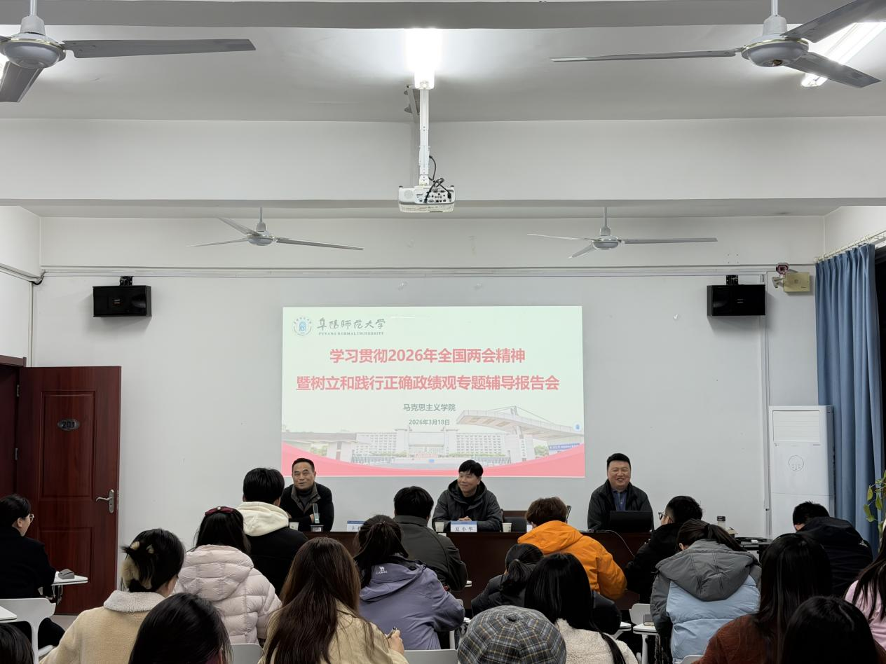 3月18日晚,在全国思想政治理论课教师座谈会召开七周年之际,马克思主义学院在201会议室召开学习贯彻2026年全国两会精神暨树立和践行正确政绩观专题辅导报告会。学院党委书记夏小华、副院长赵永明、部分教师及2024级、2025级全体硕士研究生参加会议。报告会由理论宣讲与社会服务部主任李全文主持。