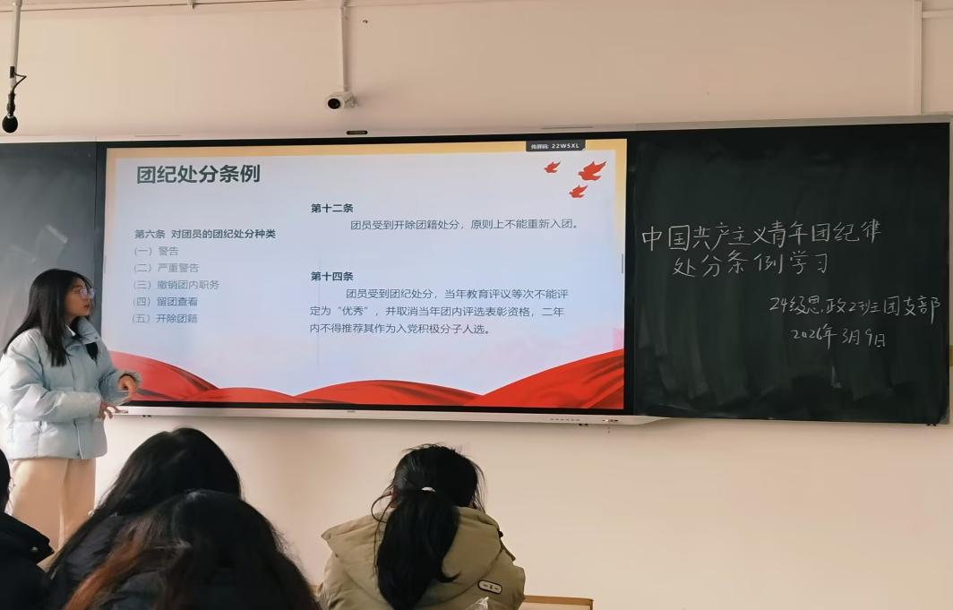 在学习活动中,各支部通过领学解读、小组讨论、案例剖析等多种形式,对文件进行了重点学习。为全体团员划定了清晰的行为底线,是共青团保持先进性、纯洁性的制度保障。各班团日活动特别强调了团员同学在广大青年中的领导带头作用。与会团员纷纷表示,作为团员,尤其是马院学子,必须以身作则,率先学习、理解、遵守《条例》,成为校园中遵规守纪、勤奋学习、服务同学的榜样。要在日常学习生活、社会实践、网络言行等各个方面,主动维护团组织的形象与声誉,带动身边同学共同进步,积极向党组织靠拢,努力成长为有理想、敢担当、能吃苦、肯奋斗的新时代好青年。