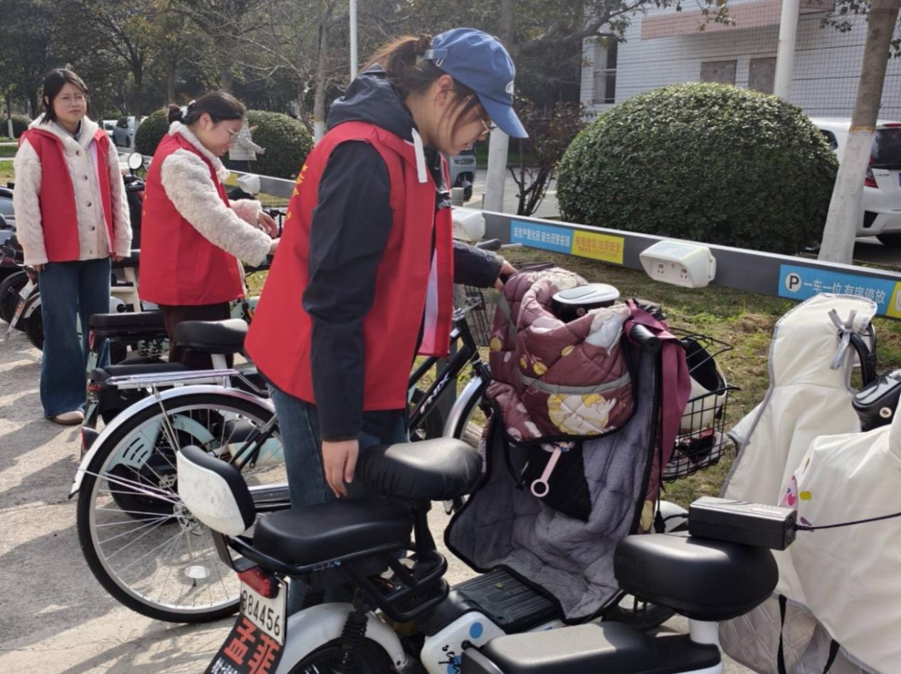 在实践行动方面,学院开展了多项志愿服务活动。“文明实践,停放有序”活动中,志愿者在西湖三区规范电动车停放,优化校园环境秩序。“践行雷锋精神,美化校园环境”志愿清扫活动,对篮球场及周边卫生死角进行了彻底清理。此外,学院还创新形式,开展了为期一周的“我做一日雷锋”线上打卡拍照活动,鼓励学生为后勤人员送感谢卡、参与公益服务等,用镜头记录暖心瞬间。