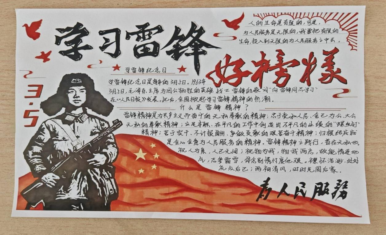 此次手抄报活动,不仅丰富了校园文化内涵,营造出崇德向善、争做先锋的良好氛围,更厚植了青年学子的家国情怀与责任担当。同学们在创作中感悟榜样力量,在思考中坚定理想信念,进一步明确了新时代青年践行雷锋精神的责任与使命。