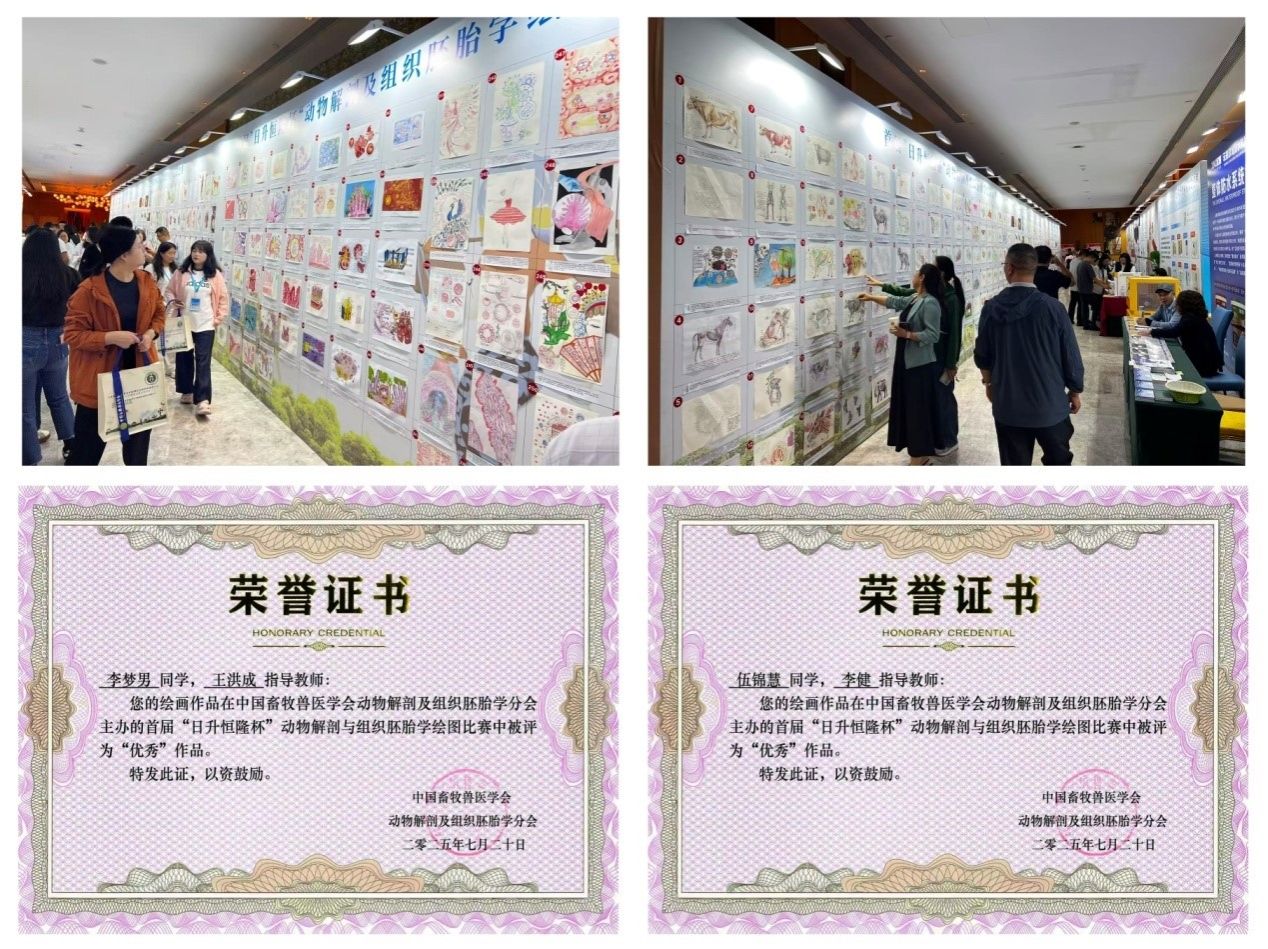 7月25日下午,分会举行了“日升恒隆杯”第三届高等农业院校动物解剖及组织胚胎学青年教师教学技能展示活动。来自14所农业院校从事一线教学工作的18位青年教师参加了教学展示交流,专家组就教案、课堂视频和现场展示等方面进行了点评和指导。同期进行的绘图交流共收集绘图作品272幅,其中手绘图作品219幅,电子绘图作品53幅。我院李梦男、伍锦慧两位同学获得绘图比赛“优秀”作品。