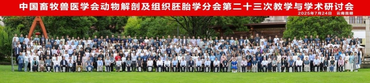 由中国畜牧兽医学会批准,中国畜牧兽医学会动物解剖及组织胚胎学分会主办,云南农业大学承办,楚雄师范学院协办的中国畜牧兽医学会动物解剖及组织胚胎学分会第二十三次教学与学术研讨会于2025年7月23-26日在云南省昆明市召开。来自全国75所农业院校的师生和企事业单位代表530人参加了本次会议。会员代表既有老一代的科学家,也有年富力强的中青年学者和朝气蓬勃的青年科技工作者以及研究生,充分体现了我国动物解剖学与组织胚胎学学科的蓬勃发展和人才队伍的不断壮大。阜阳师范大学生物与食品工程学院院长刘勇与5位教师、13位研究生共19人参加会议。
