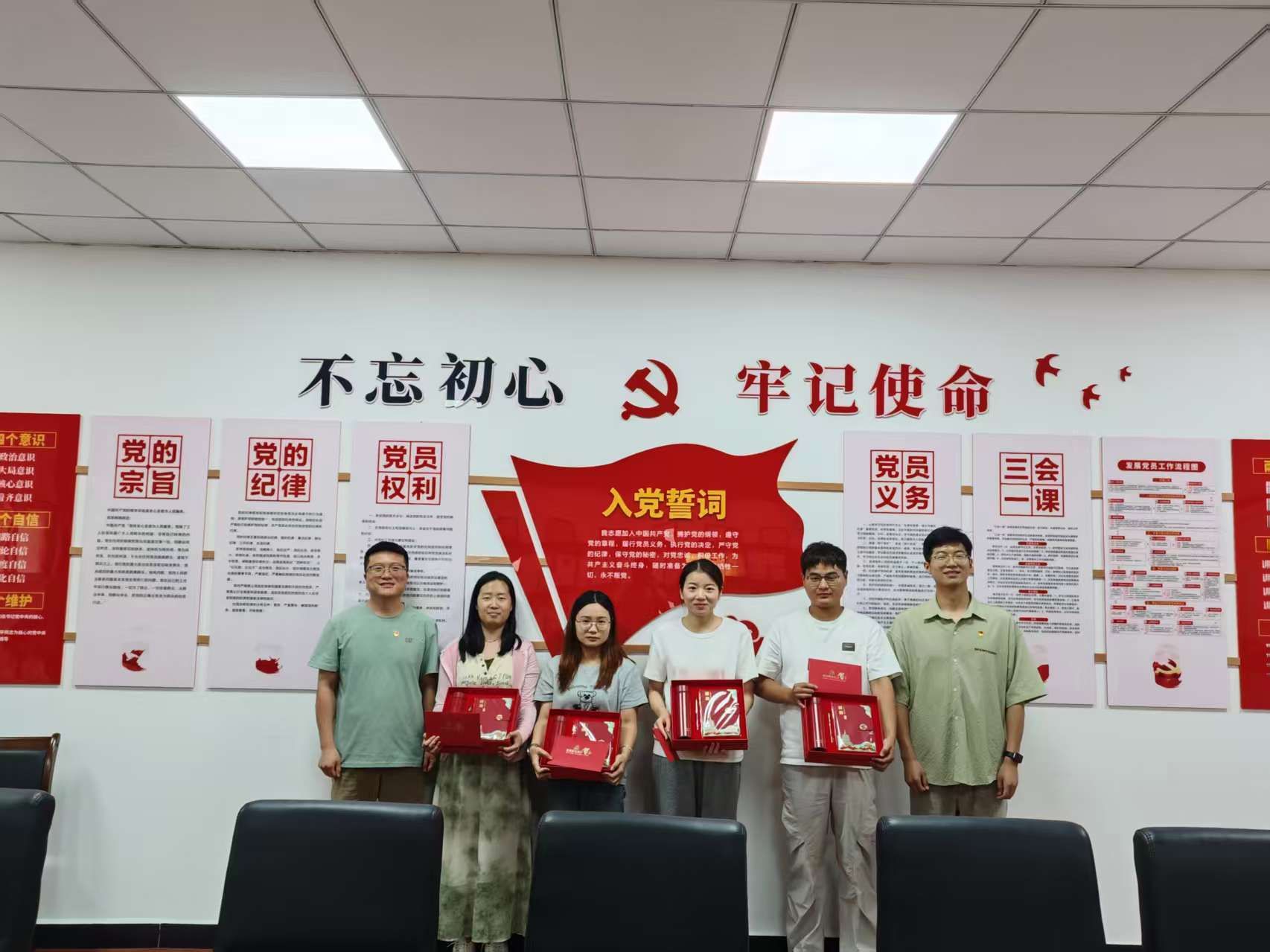 最后,全体党员重温了入党誓词,支部党员为毕业生党员送上毕业纪念礼品和政治生日贺卡,希望这份“红色行囊”陪伴毕业生党员勇毅前行,鼓足担当勇气,全身心投入工作,将个人理想融入国家社会事业发展之中。