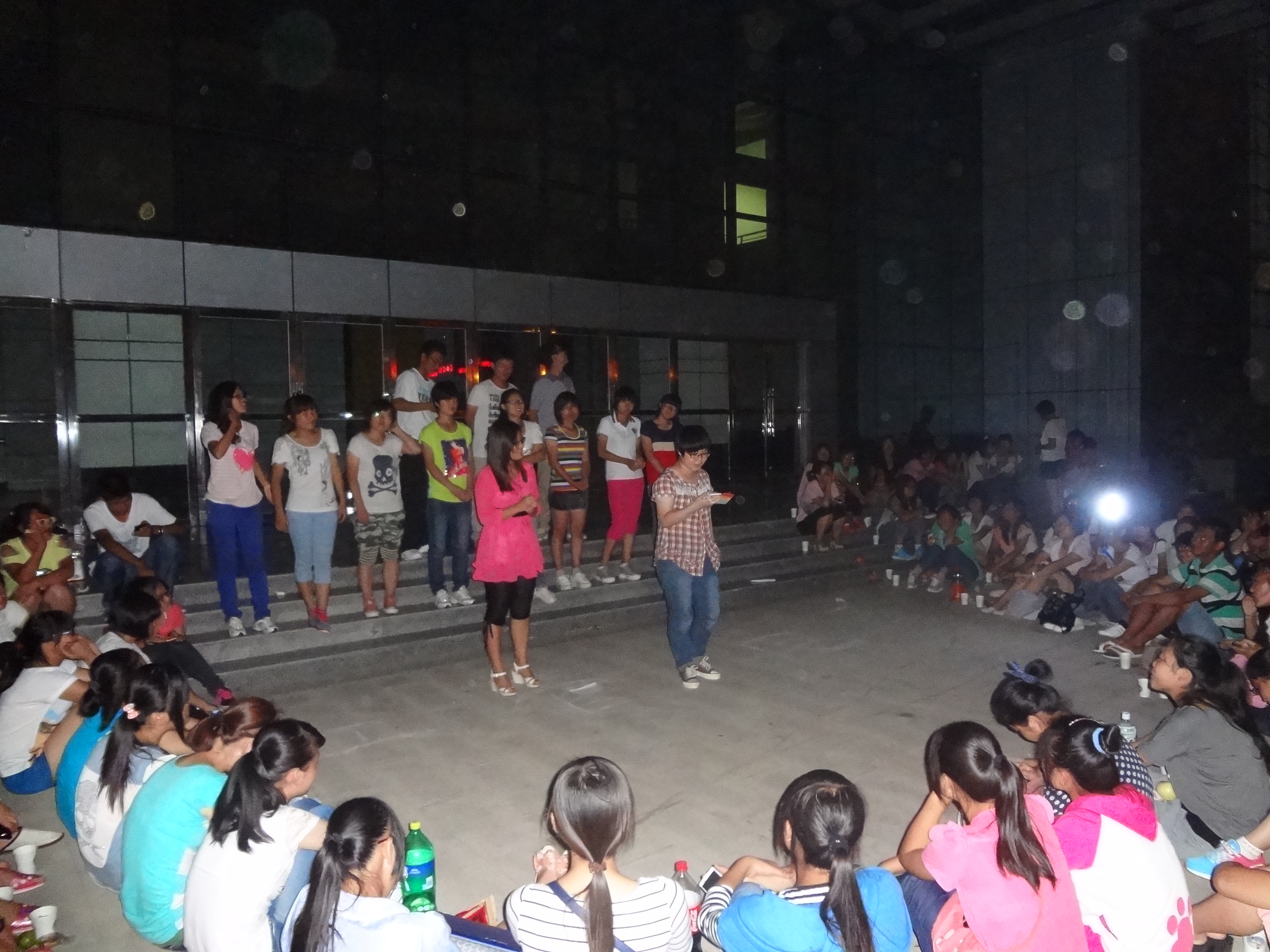 9月19日晚,我院新生在体育馆门前广场和实验D楼210教室举行“迎中秋,送祝福,快乐军训”主题晚会,新生辅导员,新生辅导员助理, 2013级在校全体新生们参加了晚会。