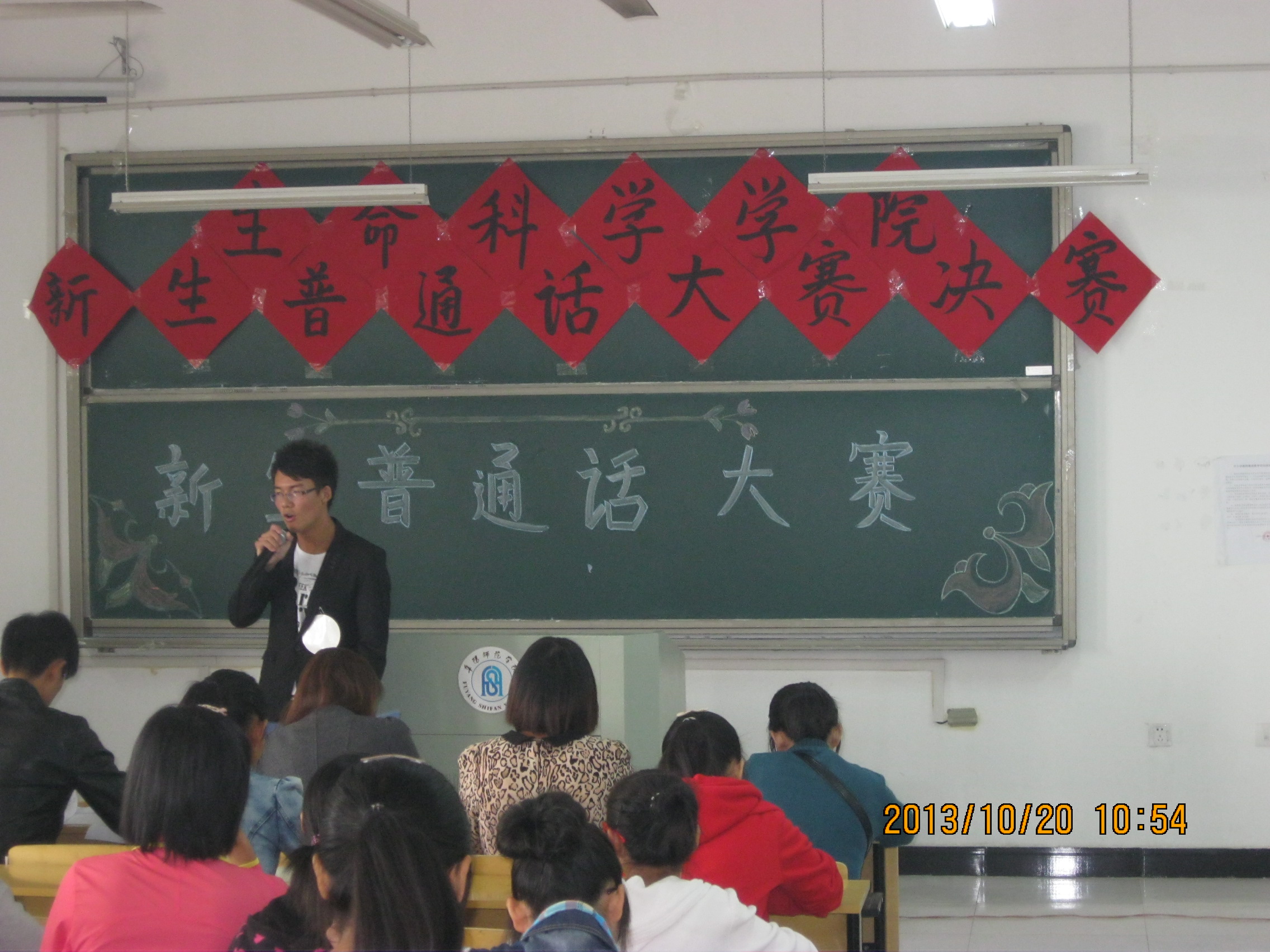 10月20日上午,我院“推广普通话 共筑中国梦”新生普通话大赛在实验D楼205教室成功举办。本次大赛由杜召凤、范亚丽、王丛丛三位老师,以及上届新生普通话大赛一等奖获得者叶飘飘同学担任评委。