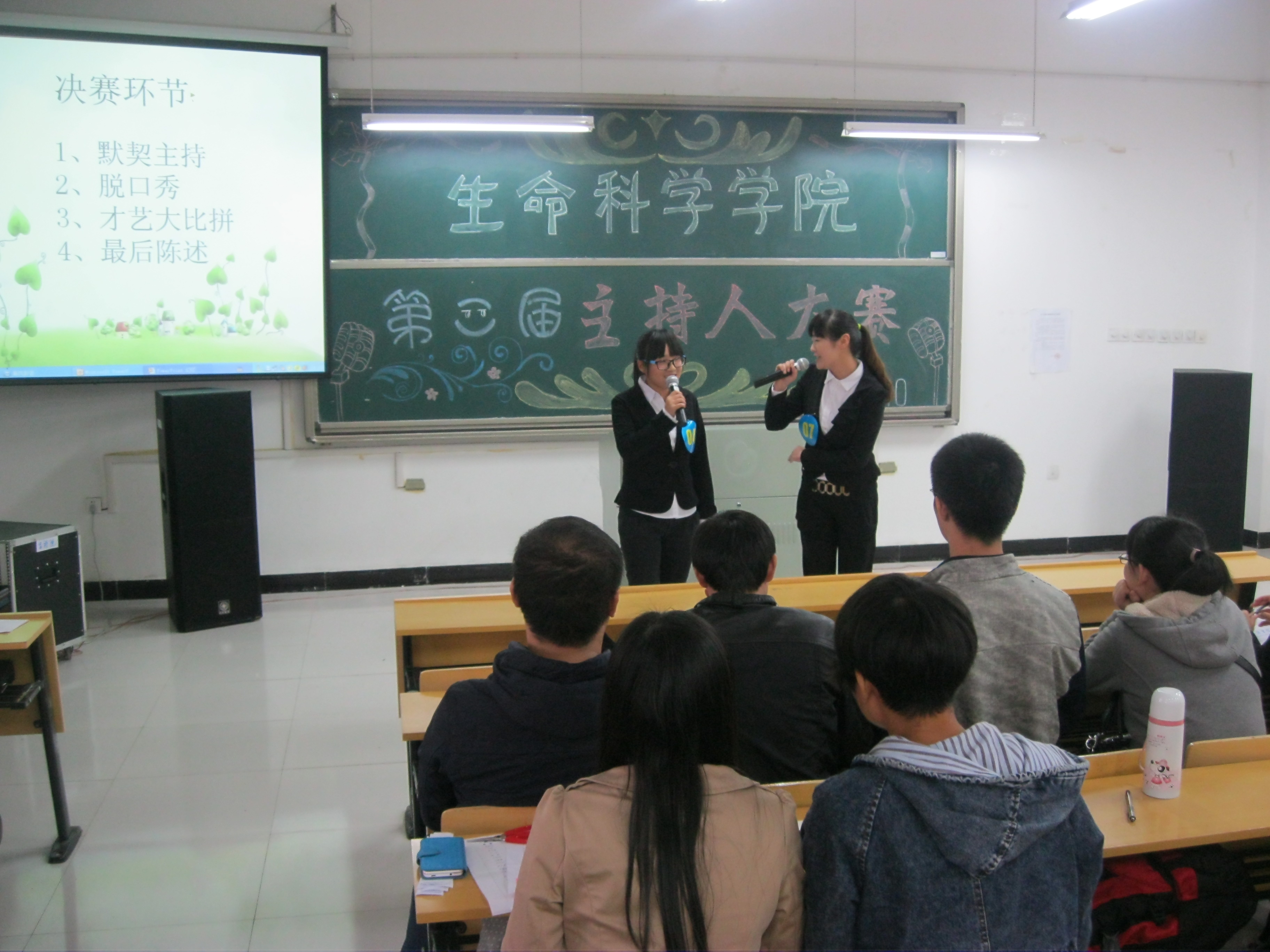 11月10日,生命科学学院第二届主持人大赛在实验室D楼205教室成功举办,出席本次比赛的评委有团总支范亚丽、王丛丛老师以及学生会主席晁勇、王子雪和丁祥。