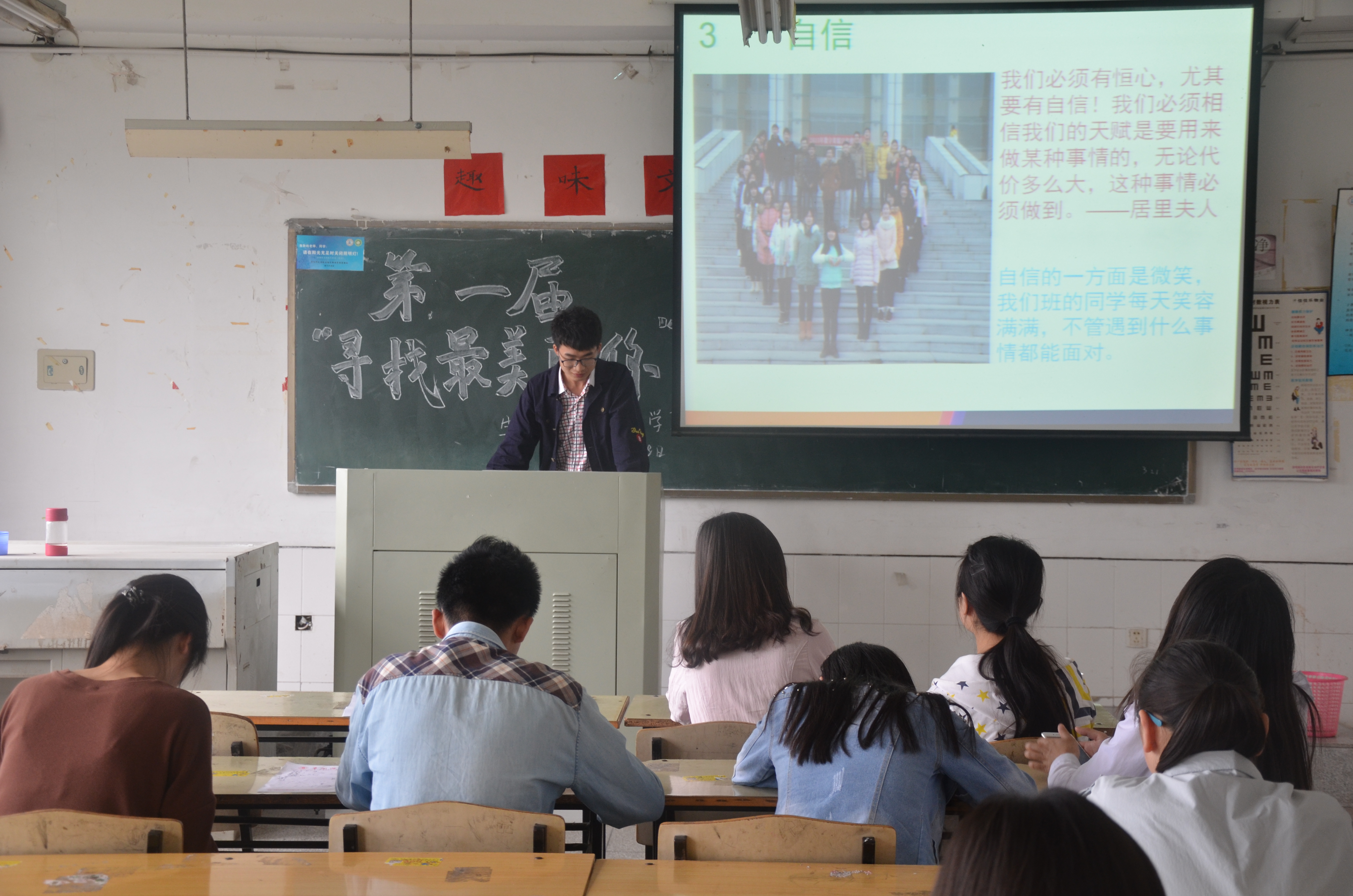 为了呼吁学生们关注生活,关注身边的人物,关注人性的美丽。我院于5月28日下午在主楼210举办了第一届“寻找最美的你”活动。本次比赛的评委有宣传部部长刘相辉,生活部部长刘楠楠和文艺部部长李芬。比赛通过PPT展示引领我们善于发现身边的美。