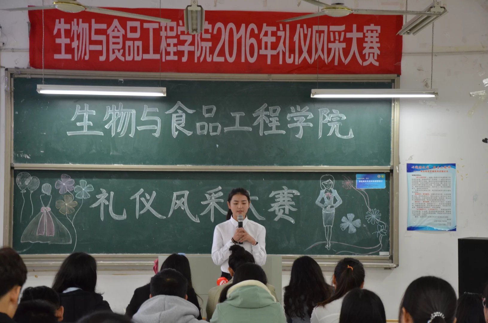11月20日下午14:30,生物与食品工程学院礼仪风采大赛在D楼205室举行。到场的评委有生物与食品工程学院学生会副主席刘晓静、上届礼仪部部长常佳慧、吴芮。