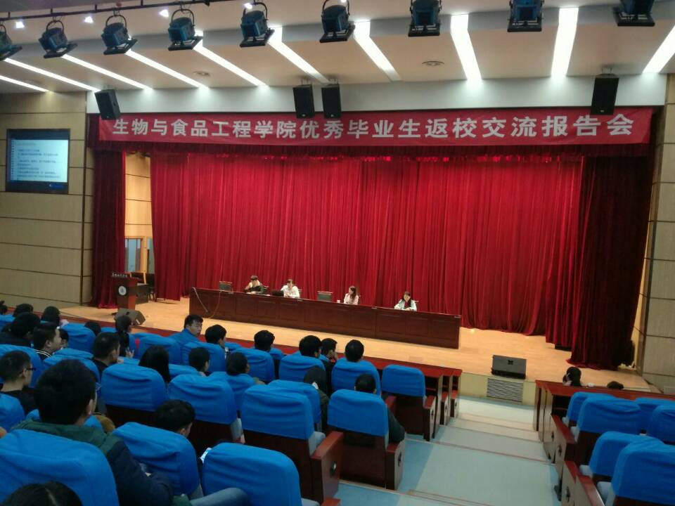 2016年11月20日上午9点,生物与食品工程学院优秀毕生返校交流报告会在综合楼报告厅召开。出席本次报告会的有我院优秀毕业生苏咪咪、陆宁、汪雁翎、马振永。此次报告会由团总支李婷婷老师主持。