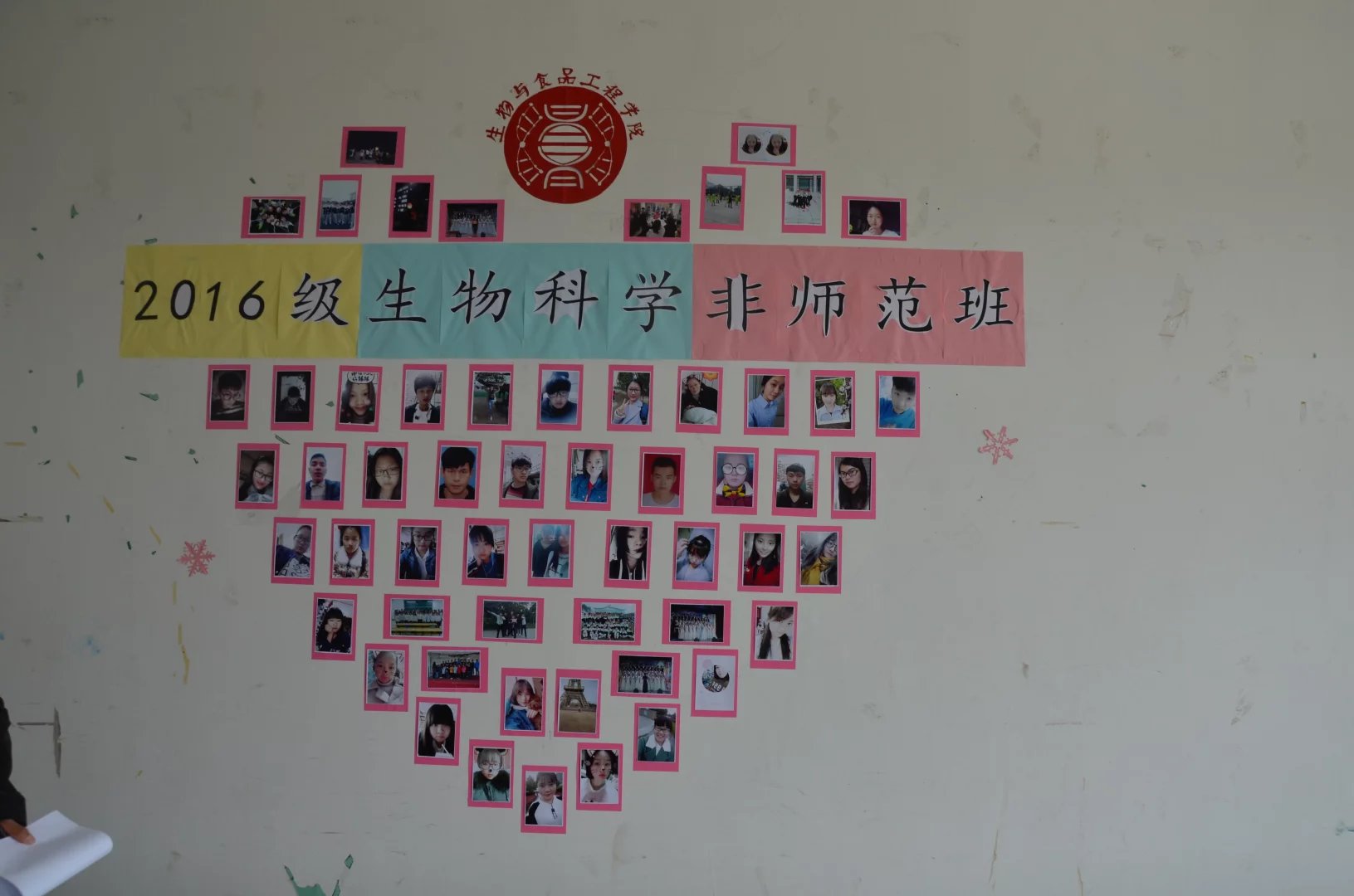 评比首先从园林一班的教室开始,体现出园林专业独有的班级文化程。紧接着是生物科学师范班,刚进教室“勤学,修德明辨 笃实”的红色横联引人注目,下方的“青山绿水”蜡笔画,个性颜料搭配及文雅的梅花等作品让评委欣赏有加。转身进入园林二班,绿色树帘下挂着班级里集体和每位同学的照片,让人有种走进绿色的森林感觉。生物科学非师范班,迎面是每位同学的萌照,创意的排列成一颗大大的爱心,将“生物科学非师范班”紧紧围绕,表示团结一致共同建设魅力教室的信心。其中“愿景墙”张贴着写有每位同学之间相互期许和对未来美好愿望的卡片!班级整体装扮丰富多彩!动物科学一班,其中最具特色的荣誉证书整齐铺满后墙一角,展示班级积极进取的精神面貌。园林三班张贴的动漫为教室增添了不少风趣。生物制药一班的大胆张扬的手掌墙,食品班唯美的风景明信片为教室增添了些许轻松悠闲。