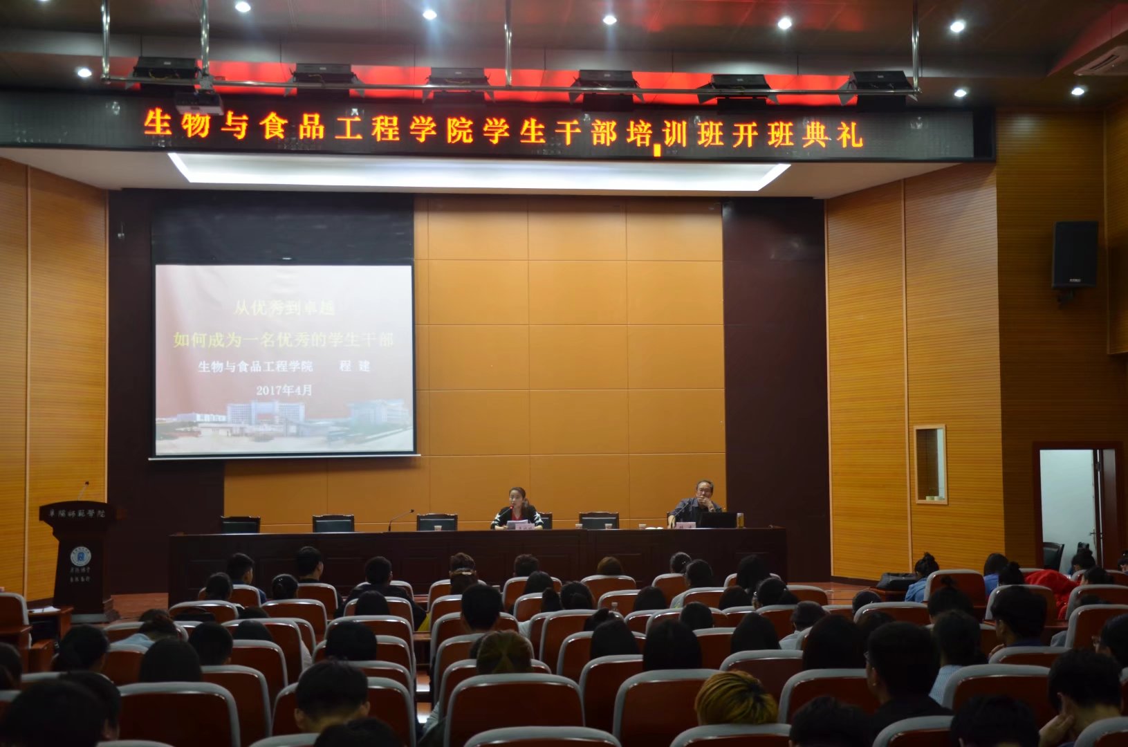 为了提高学生干部的思想觉悟,加强干部之间的沟通与交流,充分体现干部之间的合作精神,提高学生干部的创新能力、服务意识、决策能力、领导能力、协调能力以及各方面的综合能力,我院于2017年4月16日下午4点,在F楼报告厅举行生物与食品工程学院学生干部培训班开班典礼,出席此次典礼有党总支书记程建、团总支老师李婷婷,参加本次开班典礼的有大一,大二,大三各班班委以及学生会全体成员。本次典礼由李婷婷老师主持。