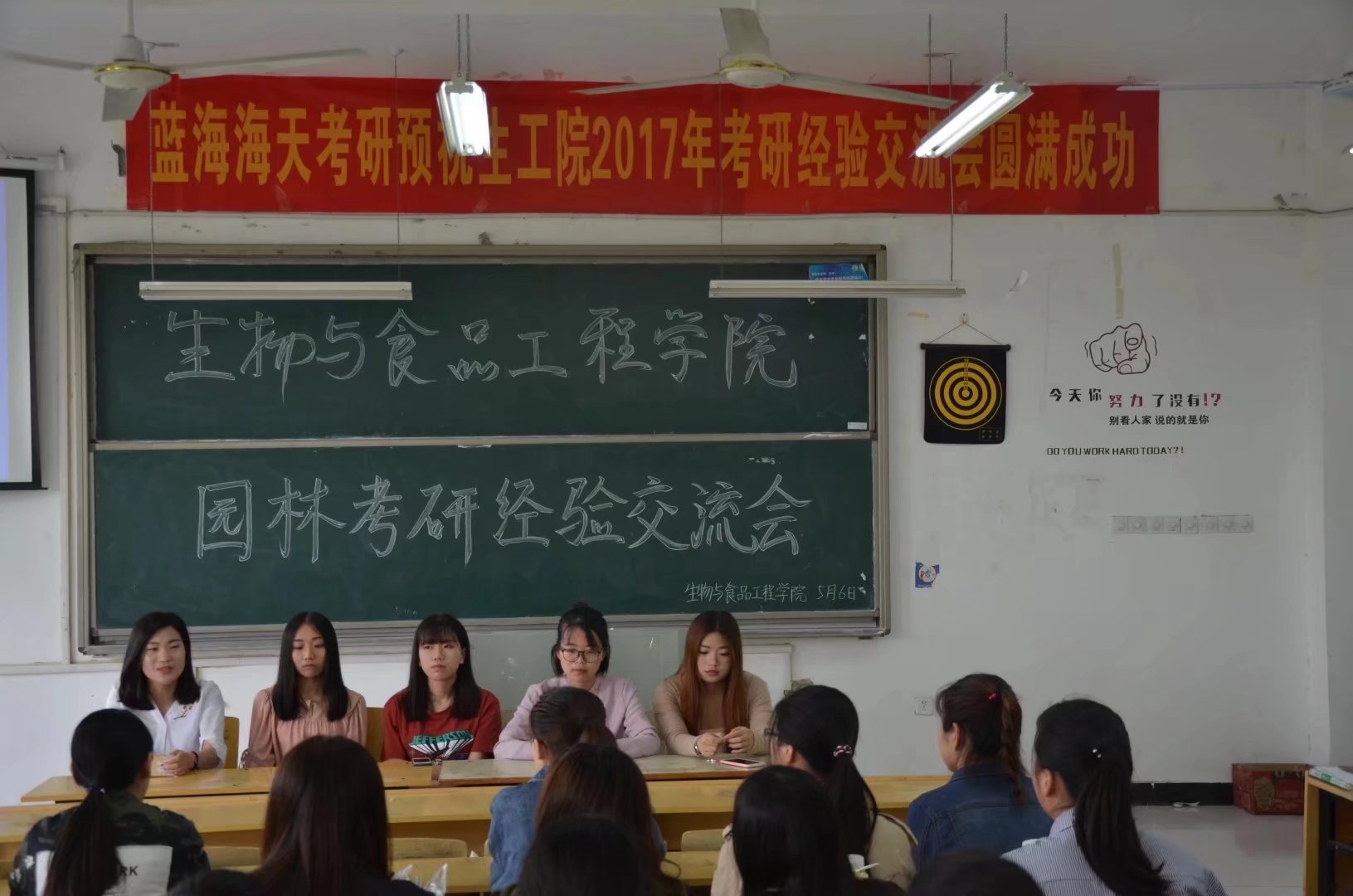2016年5月6日在D楼207、209、211分别举行了园林、动科和生科共三个专业的考研交流会。本次交流会的主持人是生物与食品工程学院学生会主席吕伟健,邀请了2013级考研成功的学长学姐为我们传授经验,参与此次考研交流会的是2015级及2016级的各班学生。
