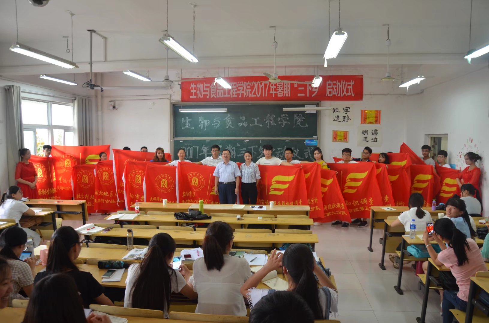 6月25日下午,生物与食品工程学院2017年暑期“三下乡”启动仪式在D楼207教室举行。该院院长崔亚东、团总支李婷婷老师及130多名志愿者参加了仪式。仪式由李婷婷主持。