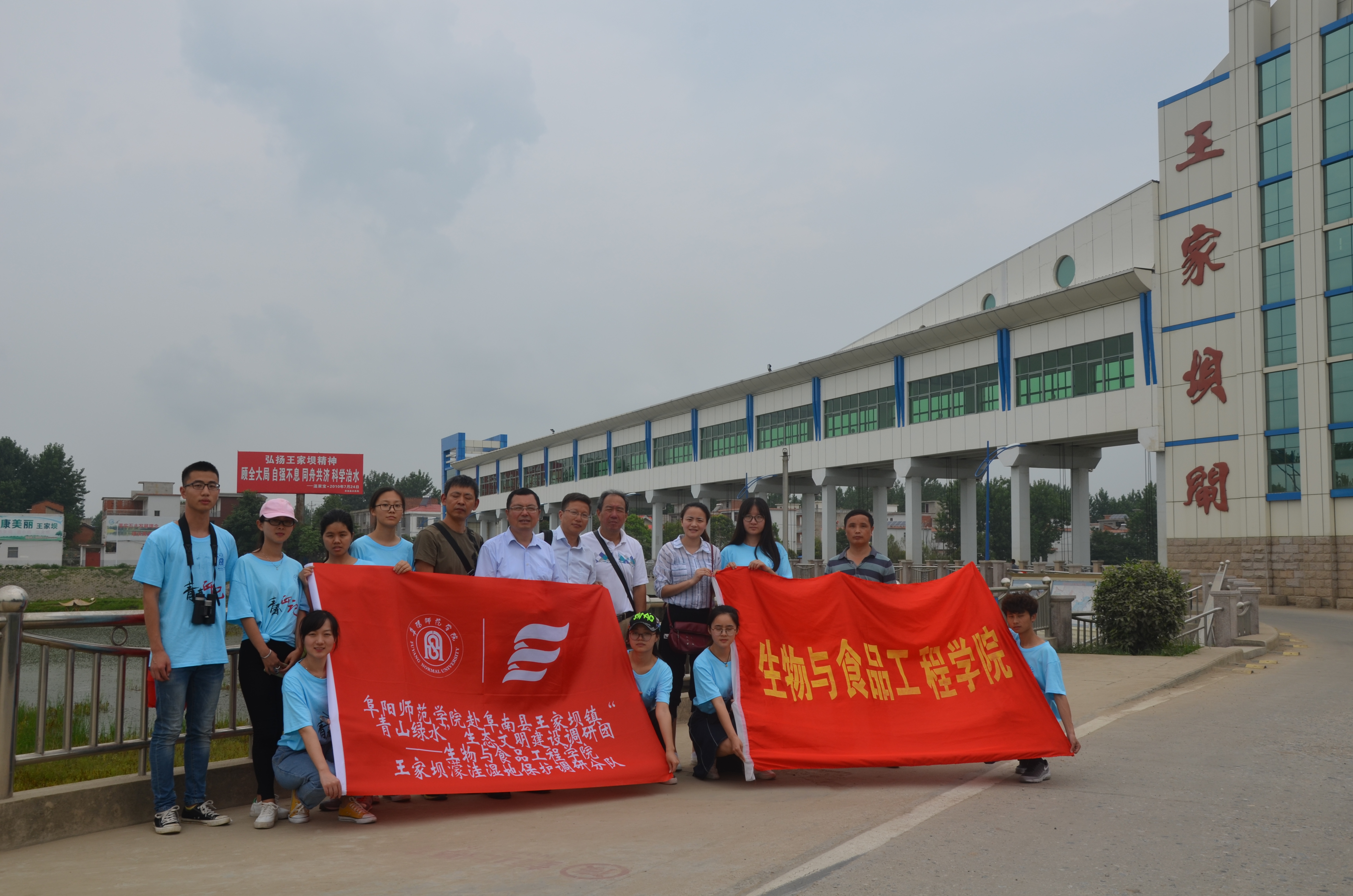 为了服务地方经济社会发展,促进青年学生成长成才,更好地把专业知识投入到实践活动中去,培育和践行社会主义核心价值观,增强社会责任意识,磨练意志品质,以实际行动迎接党的十九大胜利召开。生物与食品工程学院与2017年6月30日开展了赴阜南县王家坝镇湿地资源保护“三下乡”实践活动。此次实践活动由党总支书记程建、院长崔亚东,指导老师李永民,聂传朋,王魏根、李婷婷带队,阜南县王家坝湿地公园管理局殷辉全程陪同此次实践活动。