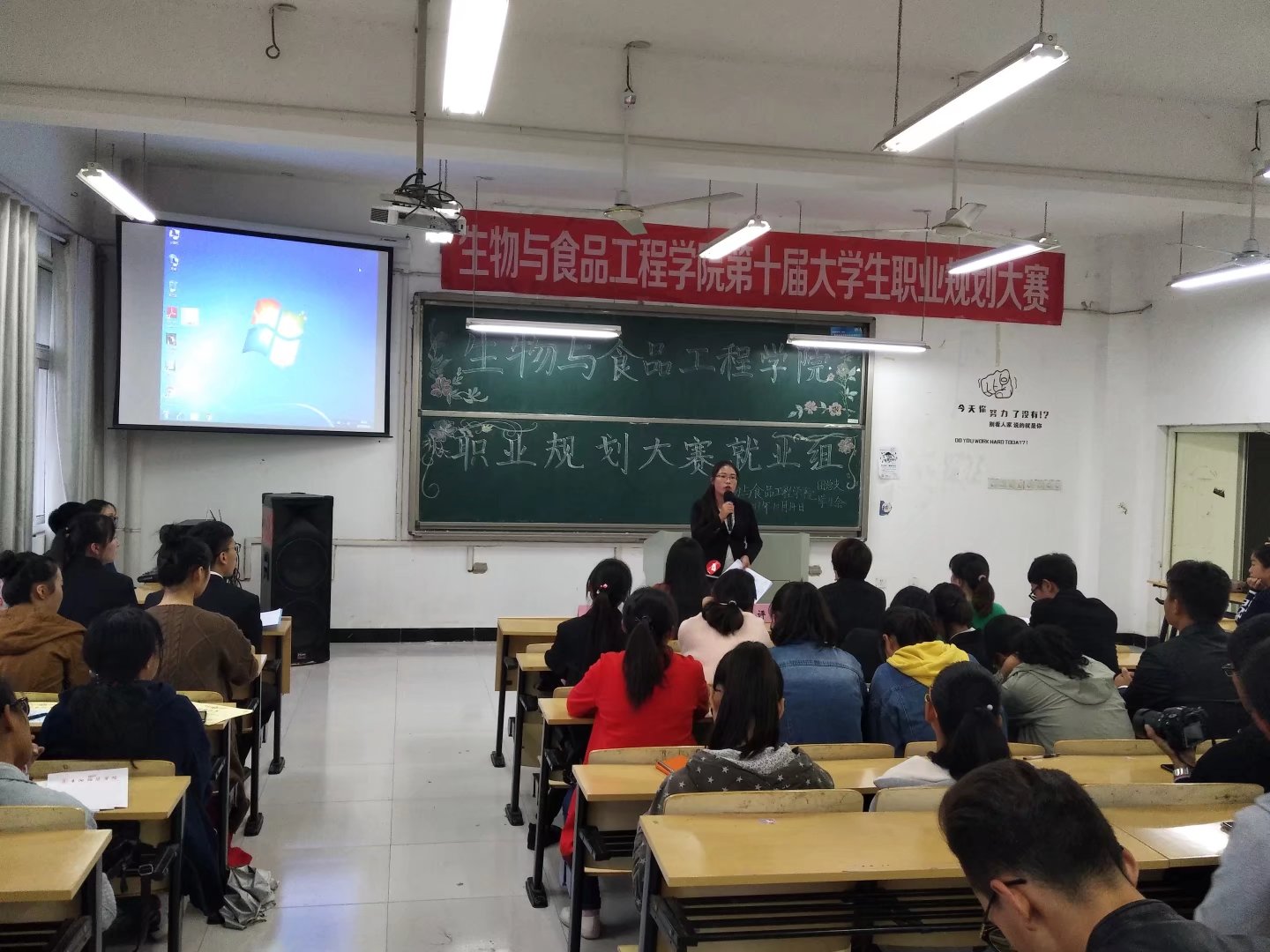 2017年10月14日,生物与食品工程学院成功举办了第十届大学生职业规划设计大赛暨创业大赛。分别在实验D楼209和211进行就业组和创业组比赛。出席本次大赛创业组的评委有生物与食品工程学院院长崔亚东、范亚丽老师、耿秀婷老师。就业组的评委有生物与食品工程学院辅导员王丛丛老师、赵明侠老师和团总支李婷婷老师。