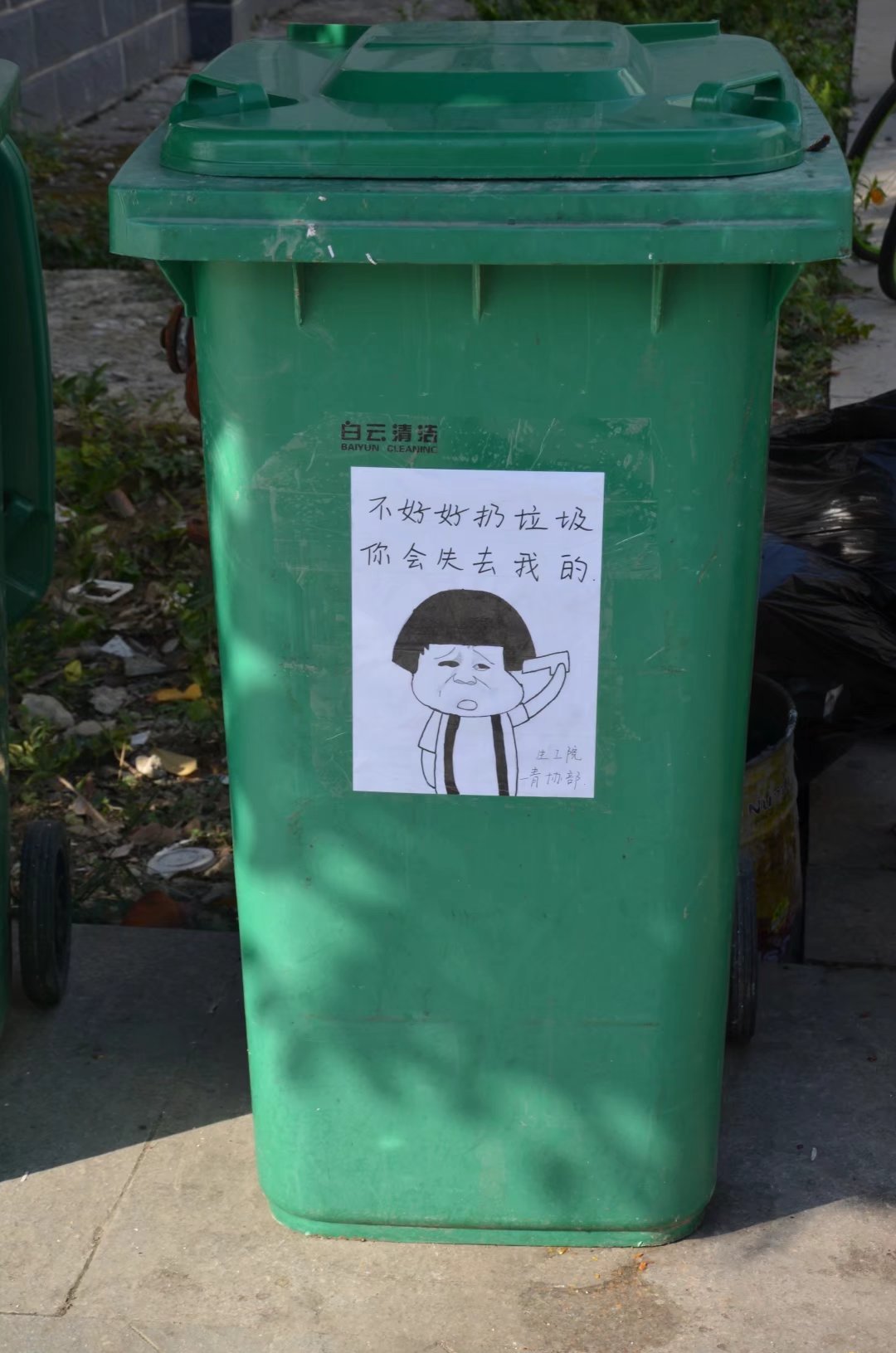 自古中国就提倡勤俭节约,爱护环境,注意卫生,人人有责。从阜师院做起,让我们的垃圾桶附近不再肮脏凌乱,让保洁阿姨在清洁垃圾桶时少一点艰辛。给阜师院一个和睦美好的环境,生物与食品工程学院青年志愿者协会在11月25号早晨8点举办了表情包垃圾桶活动。提高大家注意丢垃圾的意识,让阜师院充满爱。