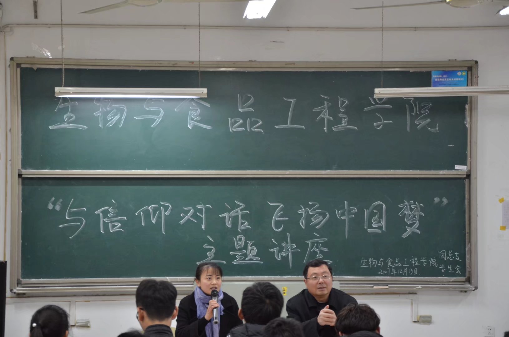 2017年12月13日,为贯彻落实十九大精神,由生物与食品工程学院团总支主办的“与信仰对话,飞扬中国梦”主题讲座在西湖校区D楼211教室顺利举办。担任本次讲座主讲的是生物与食品工程学院院长崔亚东,参与此次主题讲座有各班级班干。讲座由团总支负责人李婷婷主持。