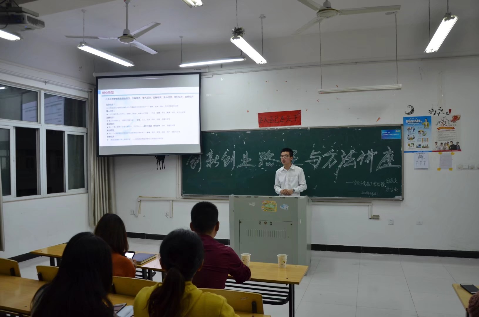 为进一步培养生物与食品工程学院学生创新创业的精神和创新创业能力,鼓励更多大学生投身创新创业实践,同时为给同学们参加“创青春”、“互联网+”等比赛打下基础,3月28日晚7:00于躬行楼D楼210教室,生物与食品工程学院举办了题为“创新创业路径与方法”的专题讲座,知名创业项目解剖及投资人刘标主讲,投融资项目专家桑宏磊等老师出席讲座。本场讲座由团总支老师李婷婷主持。