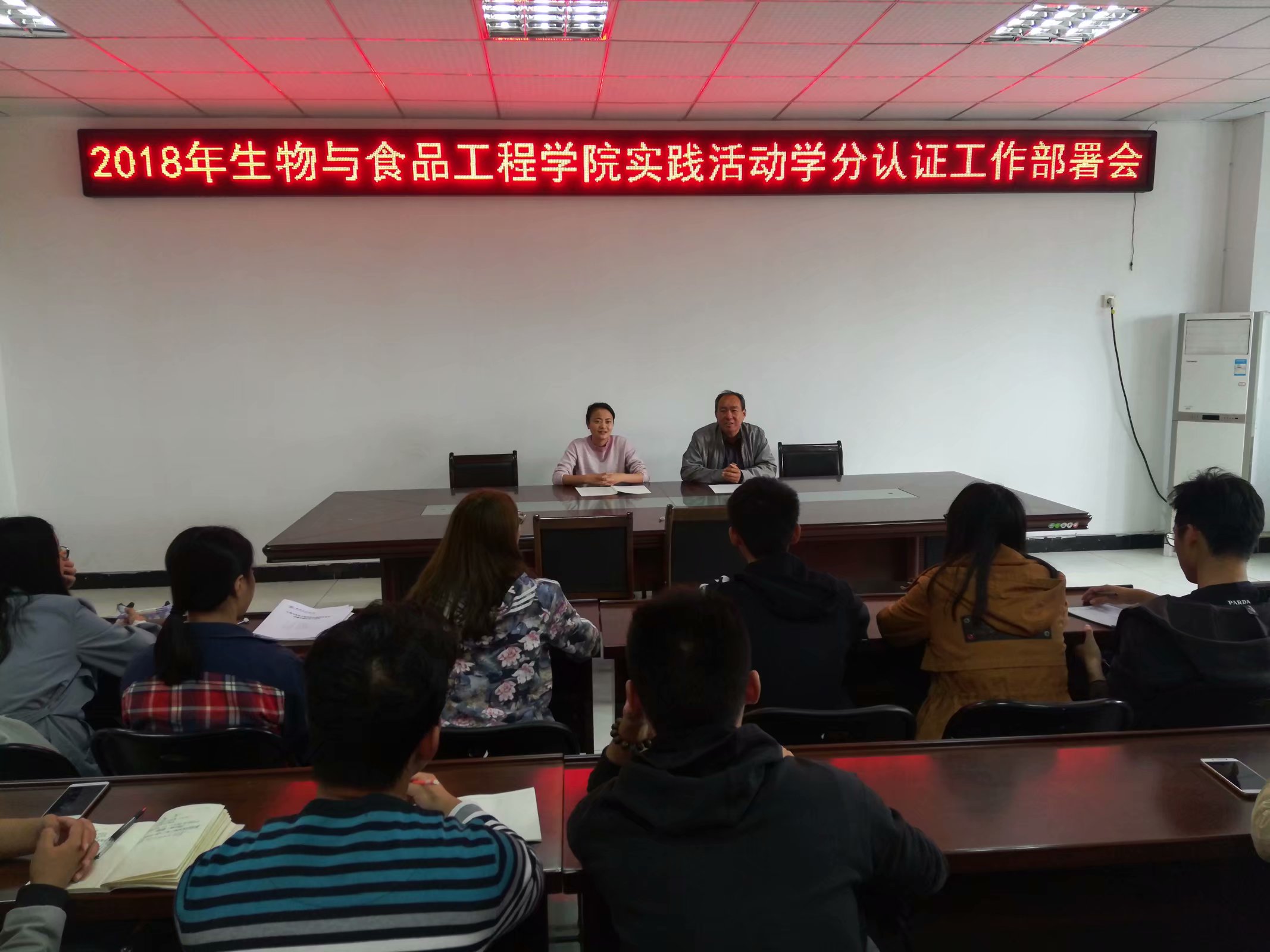 2018年10月15日中午,生物与食品工程学院在躬行E楼302会议室召开2018年实践活动学分工作部署会,出席会议的有党总支书记程建、团总支负责人李婷婷,参加会议的有各年级、学生会和社团学分认证负责人出席了本次会议。