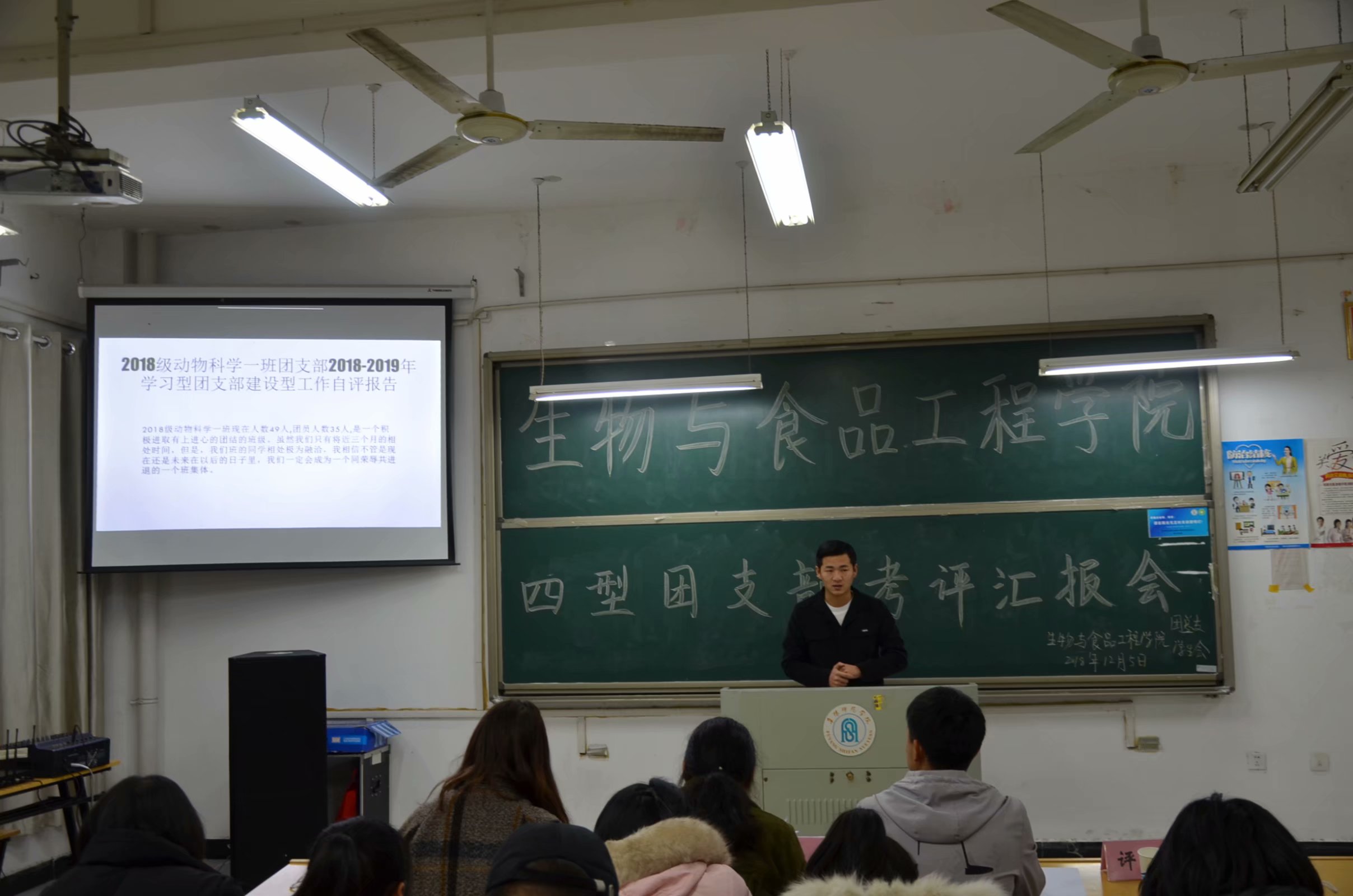 为加强基层团组织建设,2018年12月5日下午2点半,生物与食品工程学院在躬行D楼211举办四型团支部考评汇报会,出席本次汇报会的评委有赵珞珞、刘晓倩、毕胜胜。