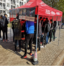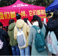 2019年 11月28日中午动物保护协会干事于一区食堂北门、二区篮球场搭建展板宣传处为来往同学进行动物保护协会野生动物感知科普活动的介绍,并邀请同学们参加本次活动。