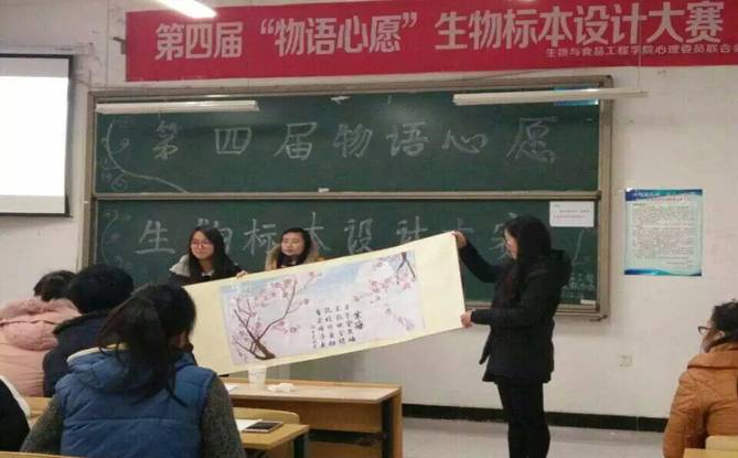 2016年12月24日上午9时,所有心联成员,进入决赛的参赛选手以及各评委来到大赛现场,带着期待和喜悦,带着大学生特有的青春活力,主持人宣布第四届"物语心愿"标本设计大赛正式开始。参赛选手被分为五人一组依次进行作品的展示,讲解作品制作过程,以及自己所寄予的心愿。参赛选手来自各个院的同学们,他们带来的作品异彩纷呈,让人目不暇接。从专业组的《梅兰竹菊四君子》,《我想给你一个家》,《五谷丰登之中国》等到非专业组的《龟兔赛跑》,《树之精灵》等作品,让人大开眼界。此次大赛,参赛选手将普通的落叶,枯草巧妙的制成了一幅幅精致的画作,让我们看到了自然的美丽,感受到自然的气息,也让我们明白了保护自然的重要性,部分作品让我们领会到生物方面的专业知识,扩展了自己的知识面,让我们感受到本次大赛的真实意义。待所有作品展示完毕后,评委对每一份作品进行了评分,并公布了一二三等奖以及优秀奖,赛后我院将对每一位获奖选手颁发获奖证书和奖品,不负参赛选手们两个多星期的努力。