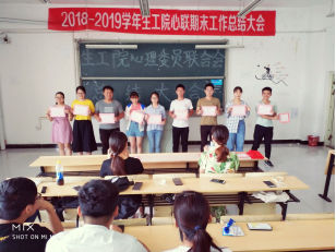 2019年6月19日中午,生物与食品工程学院心理委员联合会于D楼205教室举办了心联的期末工作总结大会,参加会议的人员有生工院心理委员联合会主席吴莉,副主席何梦雅,朱子岩,各部门部长以及心联的全体部员。心联三位主席对心联的活动的开展进行总结,并点出不足之处,提出对下学期的展望,心联各部长发表工作感悟,最后由心联主席吴莉对会议进行总结。会上,心联主席以及心联各部长对部员颁发聘书。