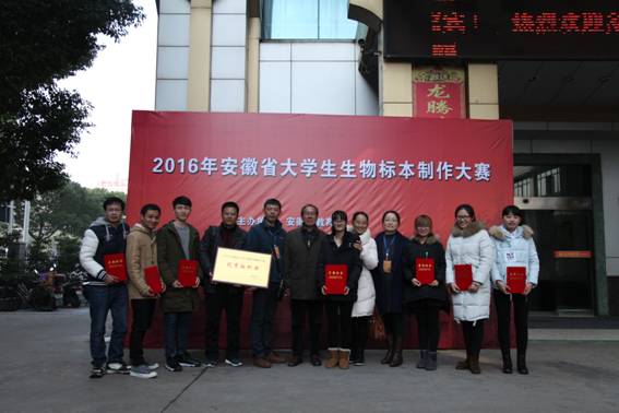 11月25日至27日,2016年安徽省大学生生物标本制作大赛在安庆师范大学举行,共有全省27所本科院校的181个作品同场竞技。经过紧张激烈的比赛,我校报送的8件作品分别获得一等奖1个、二等奖2个、三等奖4个,学校同时获得优秀组织奖,创造了我校参加此项赛事的最好成绩,在全省同类院校中名列前茅。
