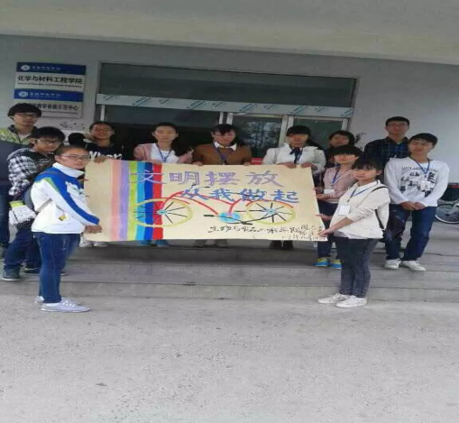 鉴于近日自行车摆放混乱无序、占用人行道等情况,于10月25日星期日中午10:40分由生物与食品工程学院学生会青年志愿者全体成员对阜阳师范学院西湖校区进行了一次校园内的自行车摆放的活动。同学们分别在一区食堂北门,一区各宿舍停车处对自行车进行摆放。在各负责人的指导安排下,把全部人员分成十组,每队一队长,并把学校每一活动区域分配到每一组,在队伍出发20多分钟后,已有小对完成任务返回,之后队伍陆续完成返回,在出发不到40分钟,各组均已返回全部,任务很快完成,活动顺利完成,在11:40结束活动。此次自行车摆放活动是全校学生,为使同学们方便推出、停放自行车和充分利用有限的停车场地而举行的公益性活动。该活动不仅帮同学摆放好了乱停乱放的自行车,而且对同学们以后能自觉按序整齐紧凑地摆放自行车,起到了促进作用,是自觉摆放自行车的一种无形的公益广告。