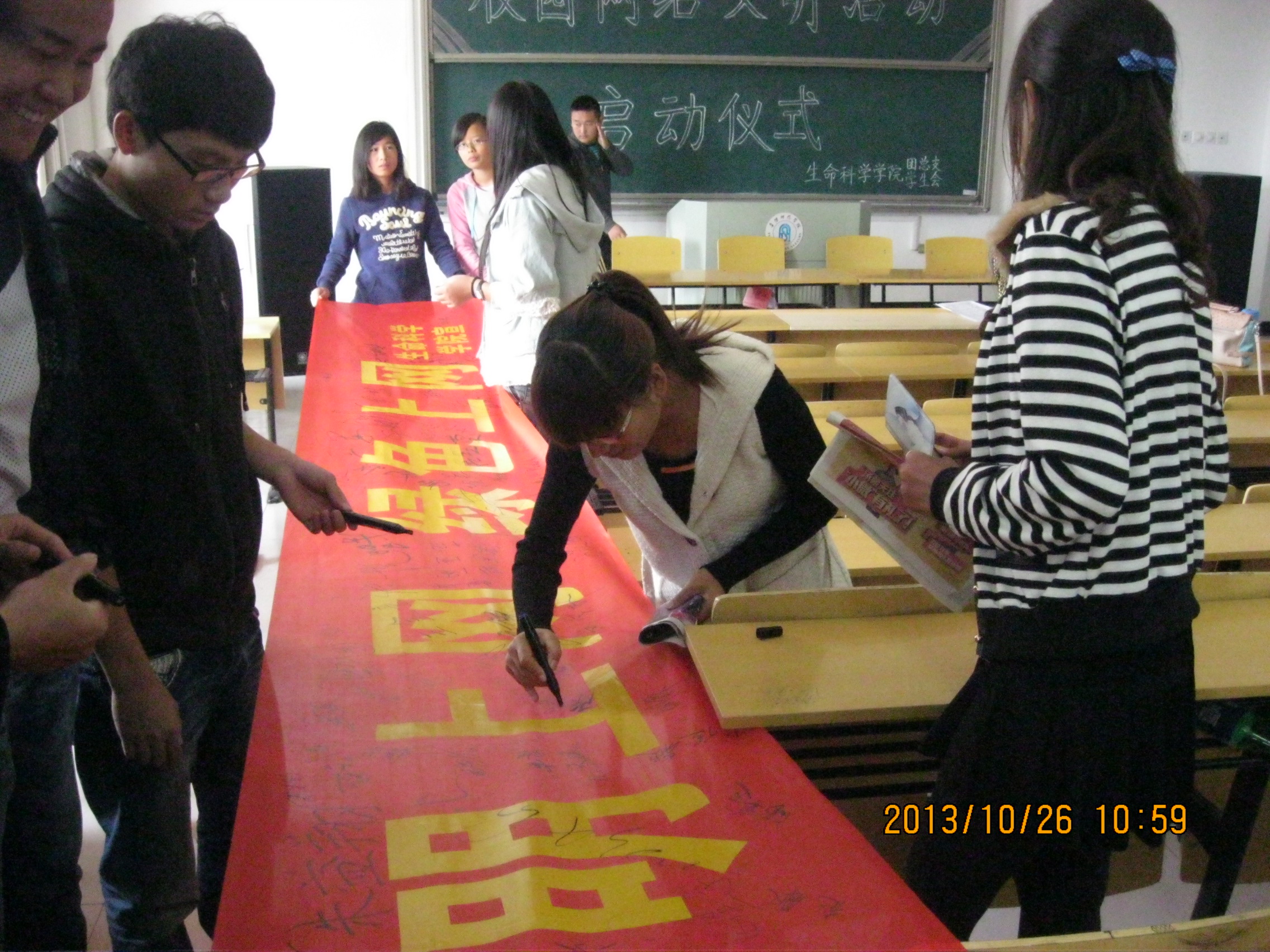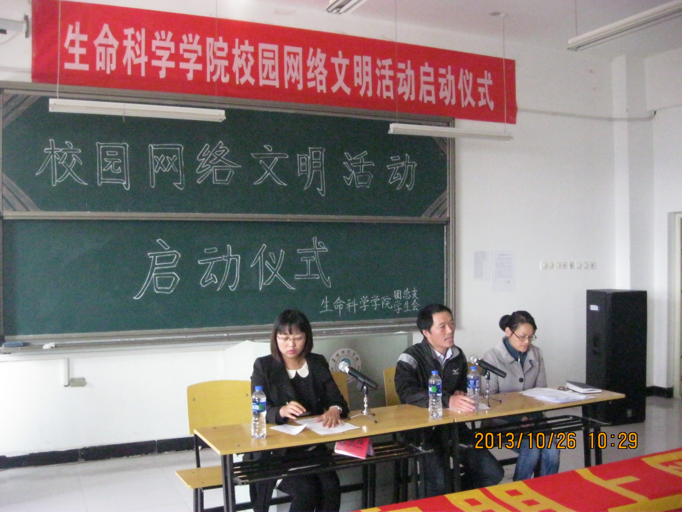 10月26日上午,生命科学学院在实验D楼207教室举行“文明上网 绿色上网”—校园网络文明活动启动仪式。出席启动仪式的有党总支书记包春雷,团总支老师范亚丽、王丛丛和2011-2013级各班班委及院学生会成员。