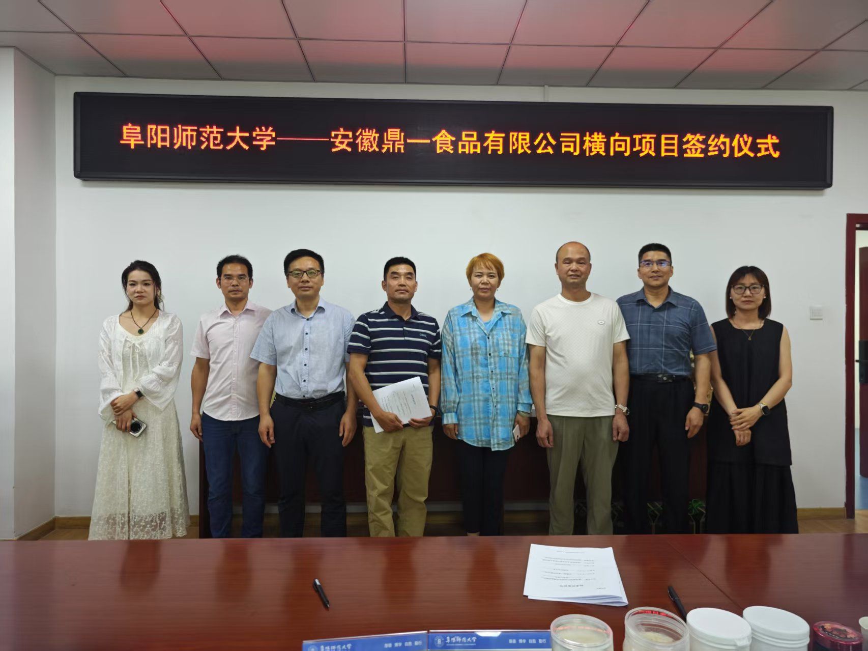 2025年5月30日,我院与安徽鼎一食品有限公司在躬行楼E215会议室举行横向科研项目签约仪式。安徽鼎一食品有限公司贺涛、孙影和李剑章三位经理、校成果转化中心于立志副主任、我院副院长屈长青、李萌萌主任、陈亮稳博士等参加了签约仪式。仪式由屈长青主持。