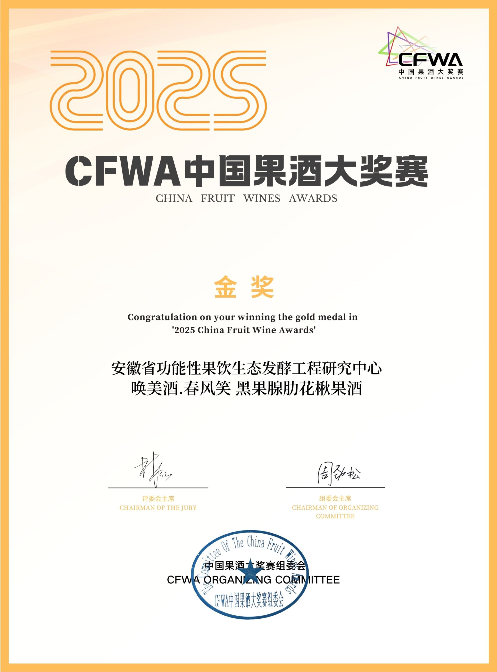 近年来,在上级组织的有力指导下,在学校党政的有力领导下,在职能部门和有关学院的大力支持下,安徽省教科文卫体劳模创新工作室、安徽省功能性果饮生态发酵工程研究中心,持续推动果酒与功能性饮品的科研创新和标准化生产,在草莓酒、猕猴桃酒、黑果腺肋花楸酒、砀山酥梨酒、青梅酒等多个特色果酒领域取得突破性成果,并与多家省内外企业建立了紧密的产学研合作机制,形成了“科研创新—技术转化—产业赋能”的良性运行模式。此次荣获CFWA金奖,是中心科研团队技术创新能力的集中体现,也标志着阜阳师范大学在功能性果饮领域的科研成果已达到行业领先水平。
