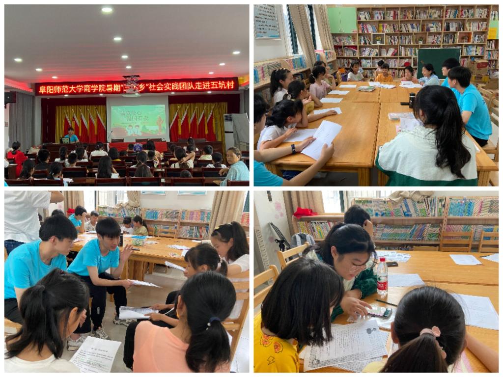 走进农村乡间,关爱留守儿童。实践团队成员走进阜阳市颍州区九龙镇五坑村以及单桥实验小学,开展党史理论宣讲和关爱留守儿童志愿服务活动。