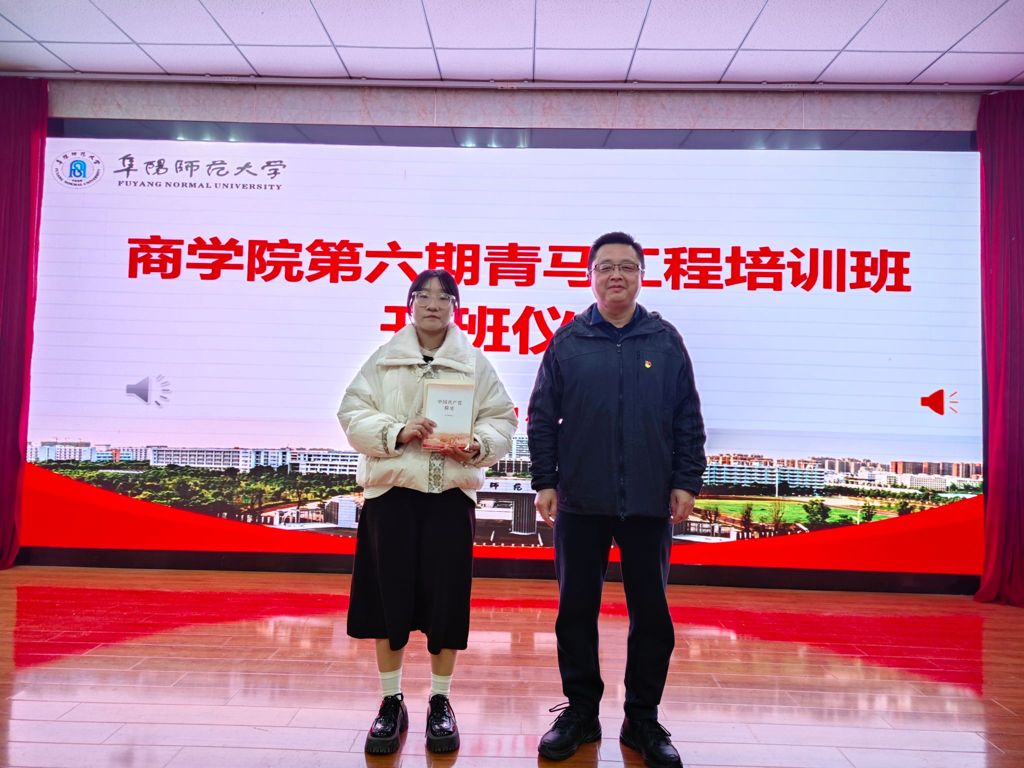 开班式上,宋东锋向第六期学员代表赠送《习近平与大学生朋友们(第二卷)》《中国共产党简史》《论党的青年工作》等学习读本,勉励全体“青马工程”学员树立表率意识,引领带动全院学子在学习中不断汲取马克思主义真理的营养,立报国强国大志向、做时代创新奋斗者,以实际行动书写为中国式现代化挺膺担当的商学院青年新篇章。