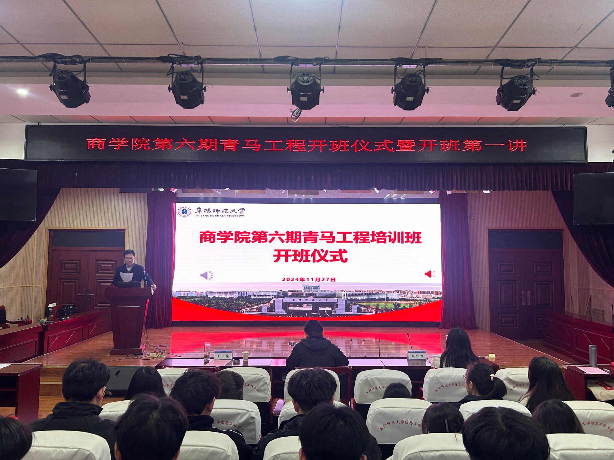 为深入学习贯彻党的二十大和二十届三中全会精神,学习宣传贯彻习近平总书记考察安徽重要讲话精神,11月27日,我院在清河校区学院报告厅举办第六期青马工程开班仪式暨开班第一讲。学院党委书记宋东锋、副书记王永刚出席仪式,第六期青马班学员、团学骨干等参加活动。