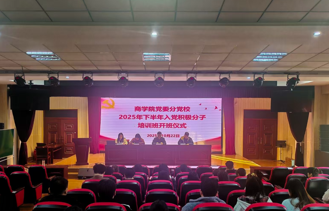 10月22日下午,我院2025年下半年入党积极分子培训班开班仪式在清河校区教学主楼125报告厅举办。学院党委副书记王永刚、各学生党支部书记和33名学员参加开班仪式。