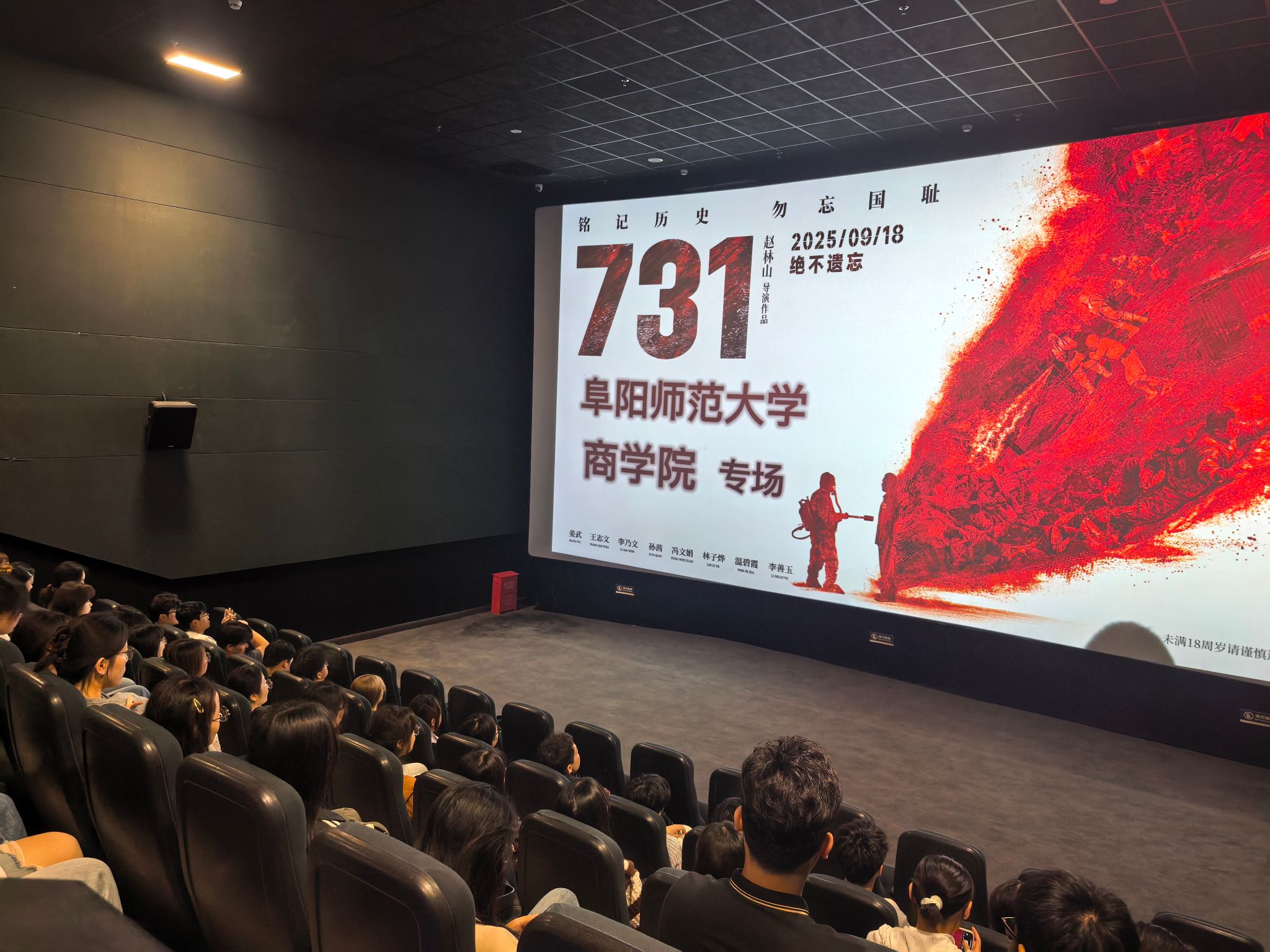 观影明志护人类和平,挺膺担当促正义前行。9月18日,电影《731》全球首映当天,学院组织学生党员及入党积极分子、学生骨干代表集中观看,旨在引导广大学生缅怀历史、奋发图强、守护和平、捍卫正义。