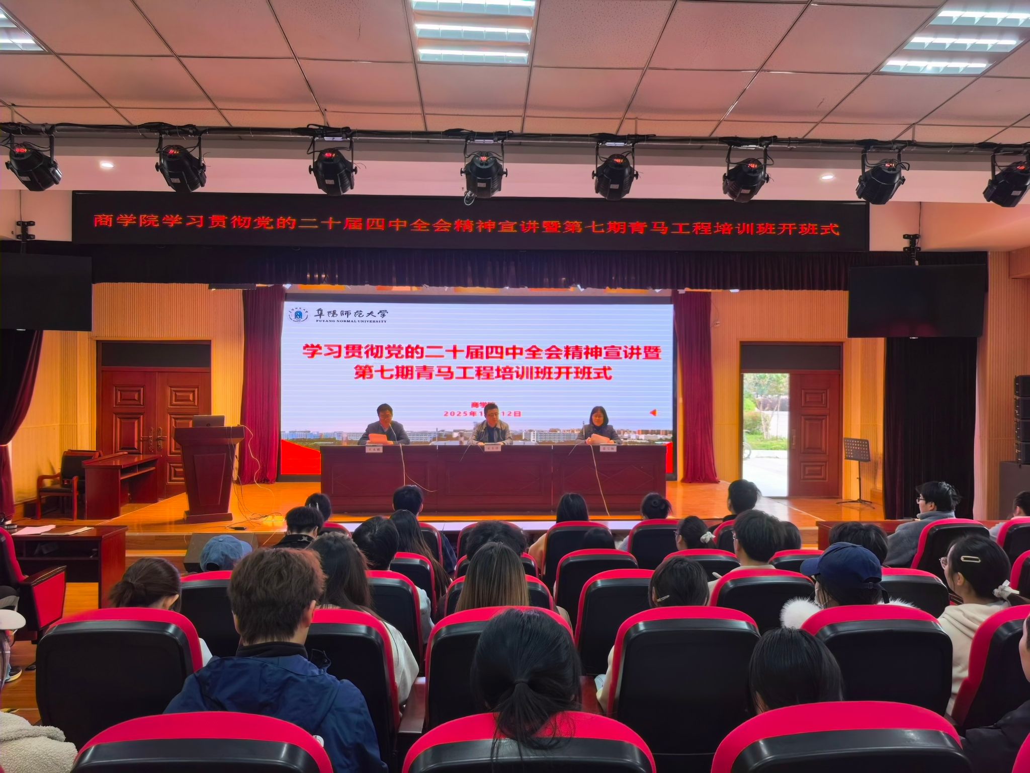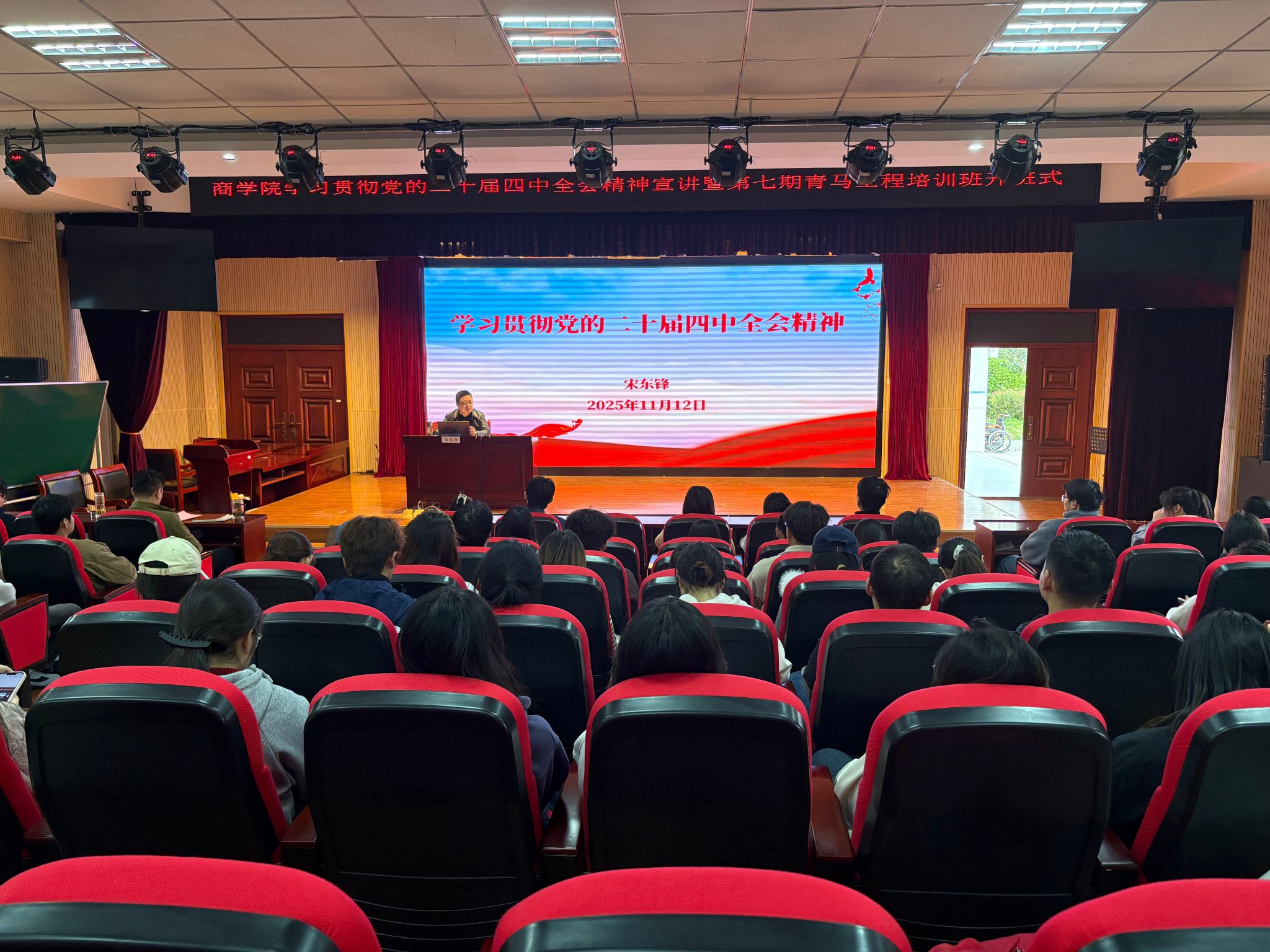 为深入学习贯彻党的二十届四中全会精神,贯彻落实习近平总书记关于青年工作的重要思想和关于教育的重要论述,11月12日,我院举办学习贯彻党的二十届四中全会精神宣讲暨第七期青马工程开班式。学院党委书记宋东锋、院长张雪梅,团学负责人,第七期青马班学员及本学期新发展党员、党员发展对象、入党积极分子参加。开班式由学院党委副书记王永刚主持。