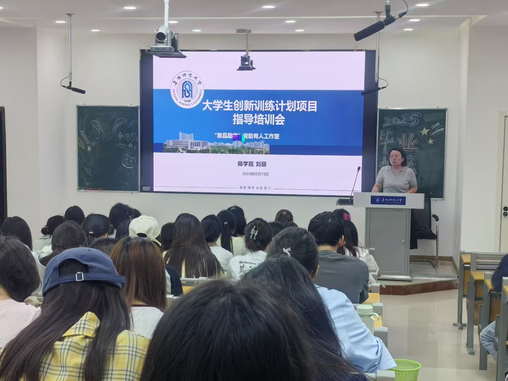 为深入贯彻落实国家创新创业教育方针,全面提升家庭经济困难学生的创新创业能力,“敦品励学”资助育人名师工作室于2025年5月19上午在清河校区外语楼101举办“大学生创新训练计划项目培训会”。培训会由“敦品励学”资助育人名师工作室首席专家刘丽副教授主讲,我院2024-2025学年家庭经济困难学生参加培训会。